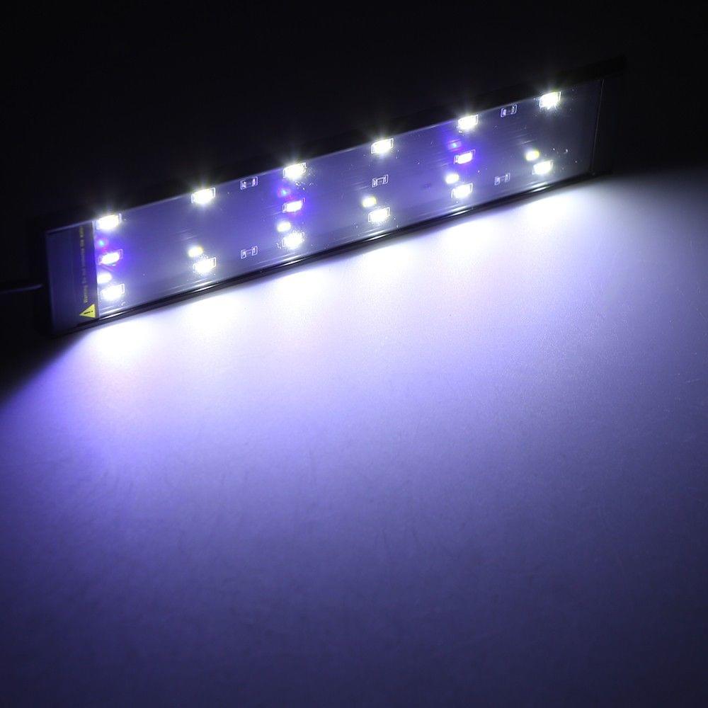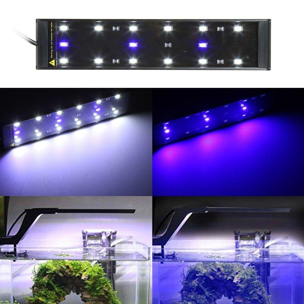 description":"Features: High luminance and high brightness, energy-saving, endurable and cost-saving. Easy to operate, “I” is for blue light , “II” is for blue & white light and the “O” is for turning on/off, you just need to press them as you need for illumination and decoration. The thickness is only 0.3in, free up for more viewing space, mini in size and light in weight, easy to carry. With a power adapter, transferring 100-240V AC to DC 12V. Safe working voltage 12V DC, without any risk to people and fishes. Superb LED beads, flicker-free and anti-glare light without strobes and radiation, it can keep your eyes away from exhaustion, long lifespan, low degradation, good heat dissipation. Equipped with clamp for mounting on the tank, no need extra wires, easy to install. Be excellent for aquarium, fish tank, pool and other similar occasions. Specifications: Input voltage: AC 100-240V Working voltage: DC 12V Light source: SMD5730 Light color: White/ blue & white Plug type: US/ UK/ EU/ AU (optional) Light Angle: 120 degree Water resistance: IP44 Suitable water quality: Salt water & fresh water Cable length: 1.8mete Material: Aluminum alloy+ plastic Type Type 1 Type 2 LED QTY: (pcs) 15(12white+3blue) 21(18white+3blue) Total Power: (w) 6 8 Lumen Flux: (lm) 795 1050 Item size(L * D): (mm) 230 * 50 * 8 330 * 50 * 8 Item weight: (g) 231 278 Package size (L *W * H): (mm) 350 * 68 * 68 400 * 68 * 68 Package weight:(g) 311 369 Note: IP44 waterresistance is for lamp body, the power adapter is non-waterproof, please use it carefully. Package list: White/ blue & white type: 1 * LED aquarium light 1 * Power adapter 1 * Bracket with screw 1 * Instruction