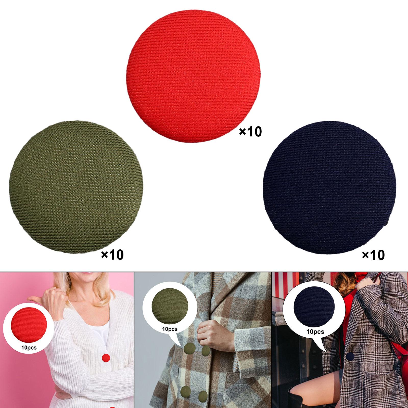 2x10x Fabric Cloth Covered Buttons DIY Metal Shank Buttons for Jackets Garment Red