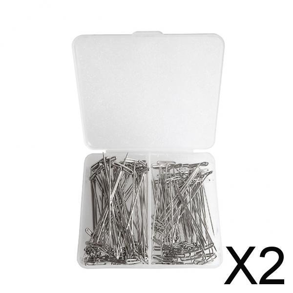 2x110 Pieces Mixed Sizes Metal Wig T-Pins with Plastic Box 38mm & 51mm