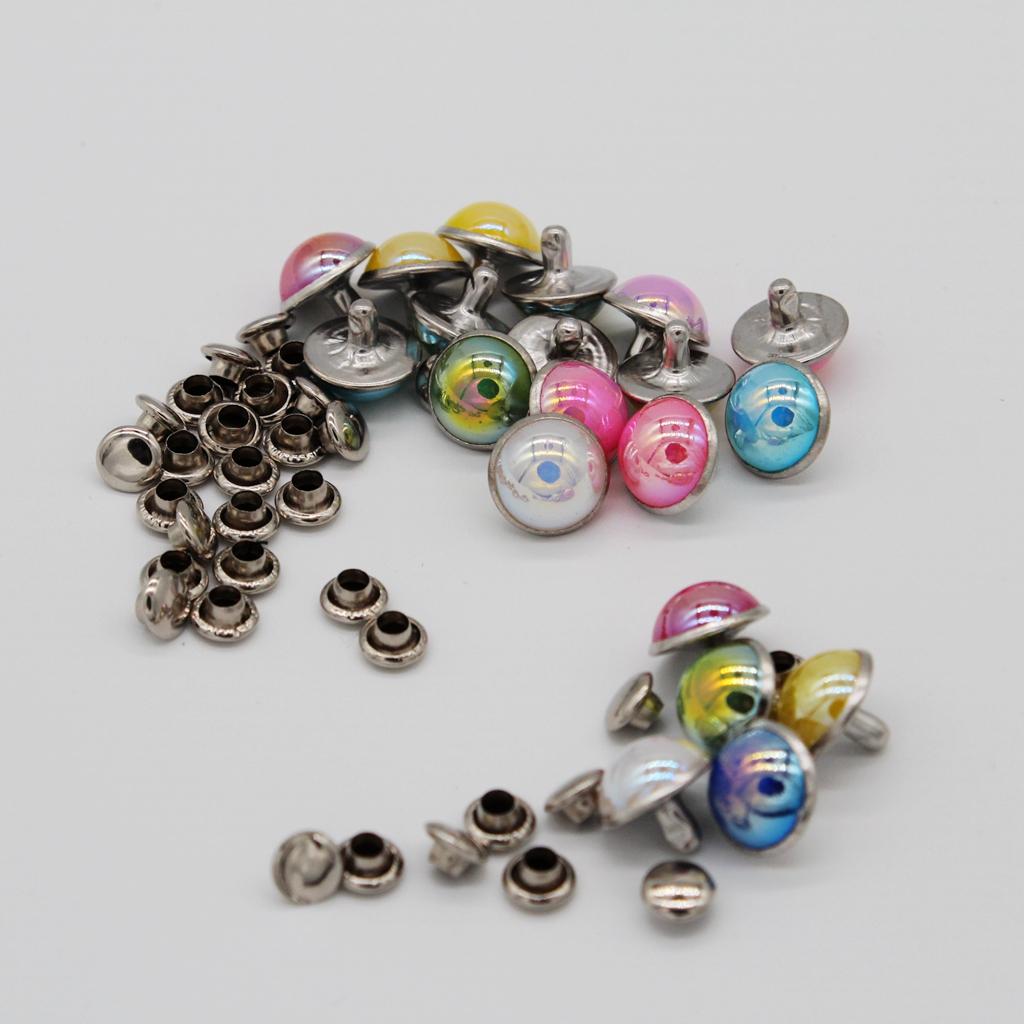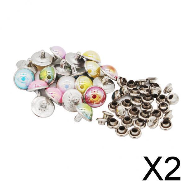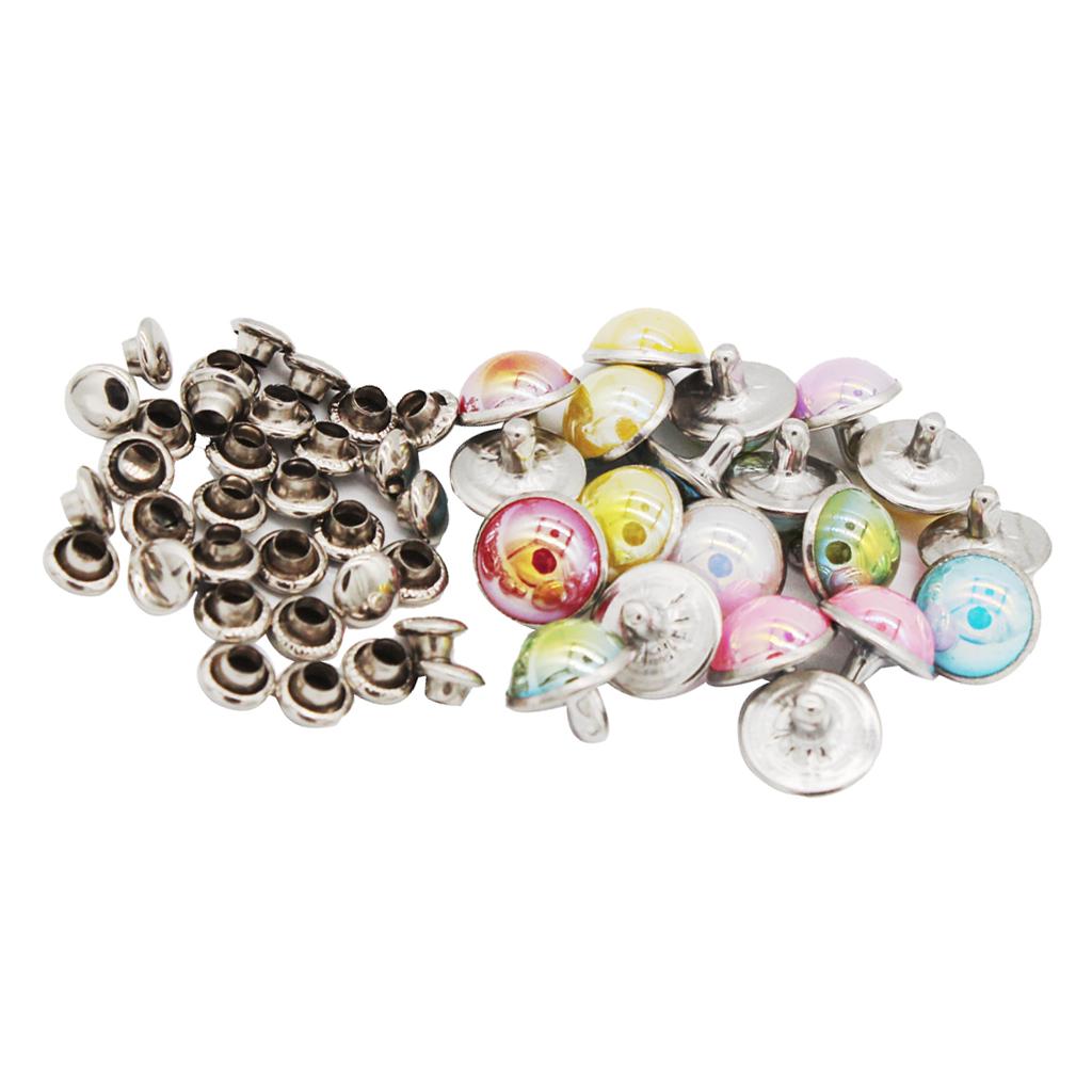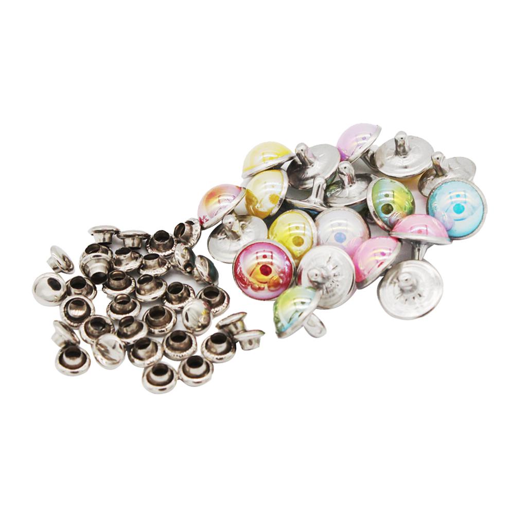 2x20 Set Mushroon Metal Rivets Studs Rainbow for Clothes Shoes Bags Decor 10mm