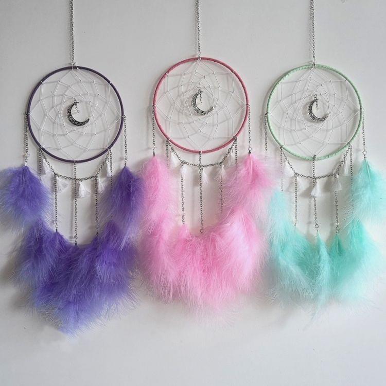 DIY Handmade Decorative Dream Catcher Wall Hanging Dreamcatcher Feather Crafts Kids Stuff Wall Room Decor(green)