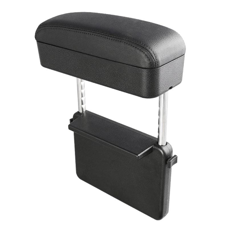 1. Relieve arm fatigue caused by long driving. 2. With storage space to prevent items from falling into the gap, say goodbye to messy things. 3. Stainless steel bracket is more secure. 4. Height adjustment button for easy use. 5. Easy to install, insert in the gap between the seat and center control. 6. Material: PU + ABS + stainless steel