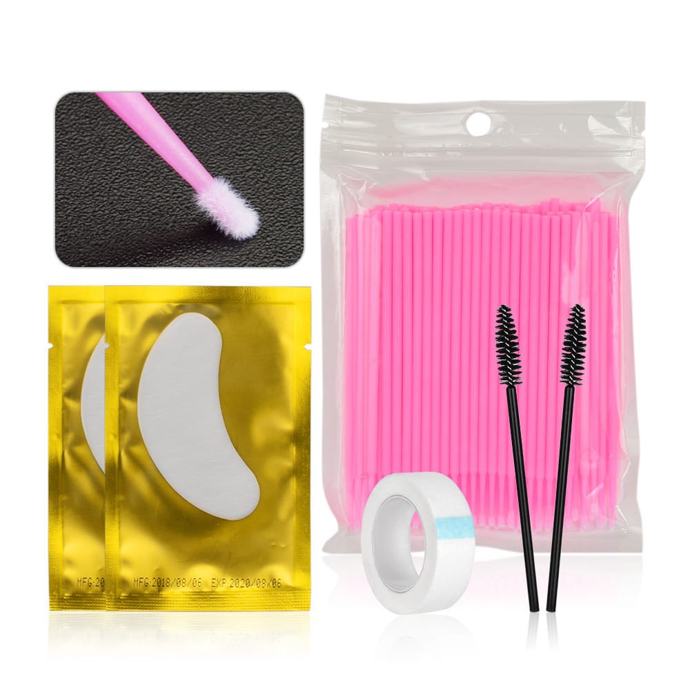 It is your best option to use it in eyelashes extension practice. Easy to use and clean.Features:*Grafting eyelash cleaning kit full range of eyelash extension tools durable and long-lasting.*Eyelash brush combs the eyelashes.*Disposable tattoo cotton swab sanitary and convenient.*Gauze protects skin around eyes.*Eye masks replenish moisture slow down aging and soothe skin.Specifications:Type: Eyelash Extension Tools SetMaterial: PlasticColor: White Pink Black (Optional)Package Size: 14.5 * 10.3 * 2.6cm / 5.71 * 4.06 * 1.02inPackage Weight: 74g / 2.61ozPackage List:2 * Eyelash Brush2 * Pairs of Gel Eye Mask1 * Grafting Eyelash Gauze100 * Disposable Tattoo Cotton Swab