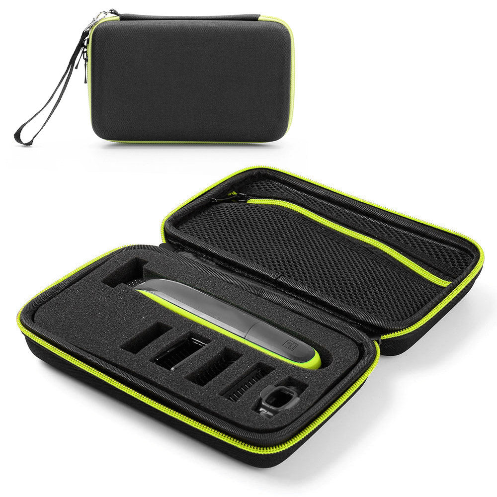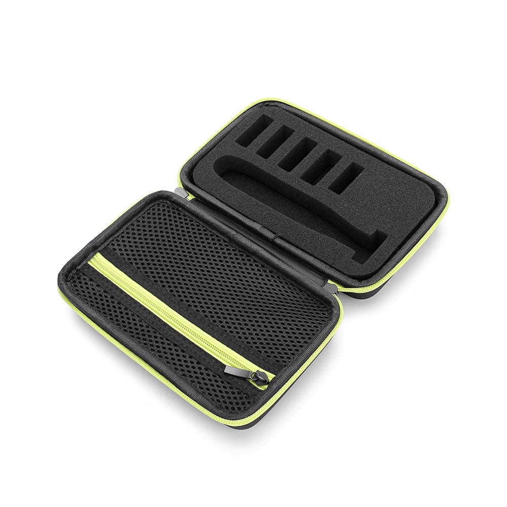 Features:Case is designed for Philips OneBlade Trimmer Shaver QP2520/90/70.High-quality hard EVA waterproof shockproof and dustproof case prevents damage from shock and scratches.Built-in Detachable Sponge there are 1 Shaver slot and 5 Replacement Blades slots on the sponge.Comes with hand strap make carrying easy. Build-in mesh bag convenient storage cables and accessories.If you have other question please connect us in time.Specifications:Color: Red Green(optional)Material: EVAItem Size: 19*8.5*6.5cmWeight: 150gPacking List:1Storage Case