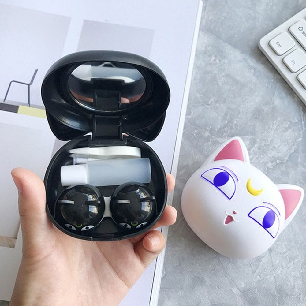 Description:Very nice to have if youre a contact wearer. Perfect size. Great for daily and travel. Come and have a look.Features:Compact size fits so perfectly in desk drawer in bag or in purse that you can bring it to work or on the go.A pair of contact lens holder a tweezers a solution bottle a suction cup and a storage case are included.The tweezers will come in handy when the lenses bunched up in your eyelid.It has a mirror to help with inserting contacts giving you more convenience.The solution bottle can hold extra liquid for contact storage.So cute it will also be a good gift option.Specifications:Type: Contact Lens CasesMaterial: ABSColor: Black White (Optional)Quantity: 4pcsPackage Size: Approx. 10 * 10 * 5cm / 3.94 * 3.94 * 1.97inPackage Weight: Approx. 60g / 2.12ozPackage List:1 * Contact Lens Holder1 * Tweezers1 * Solution Bottle1 * Suction Cup1 * Storage Case