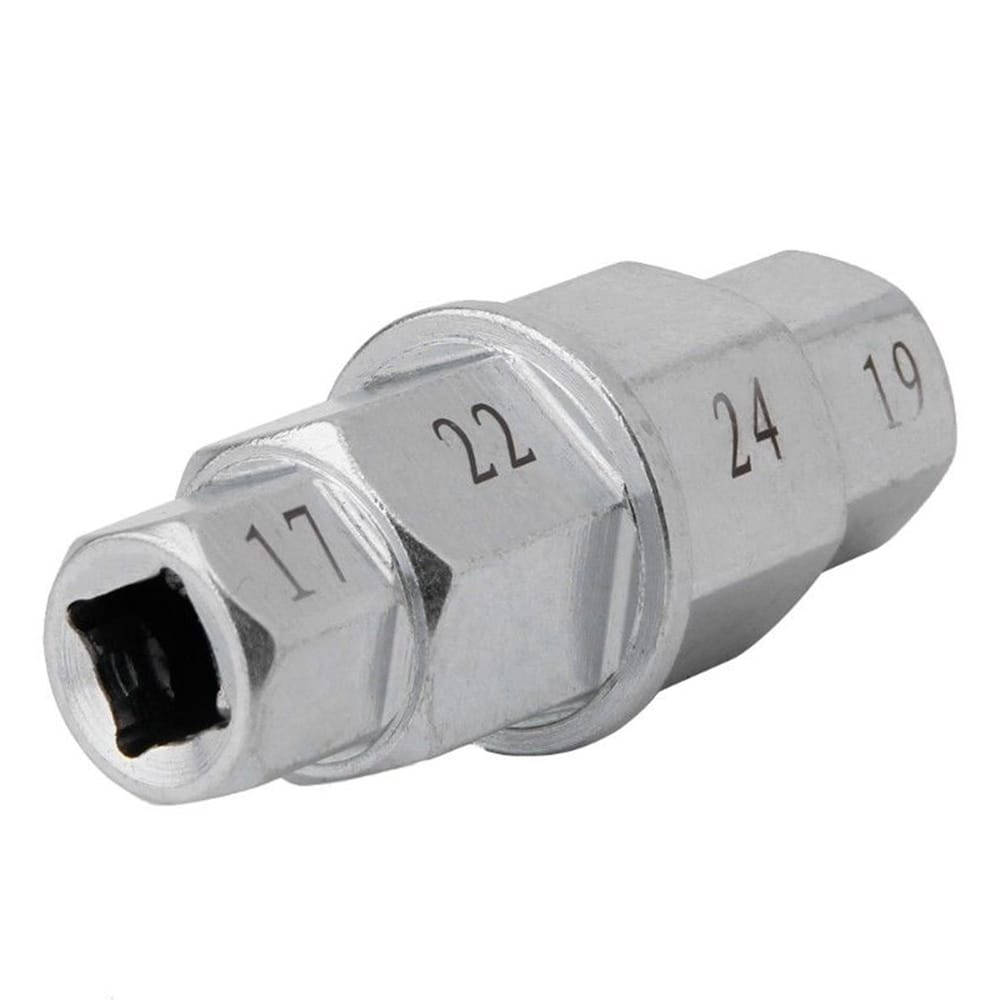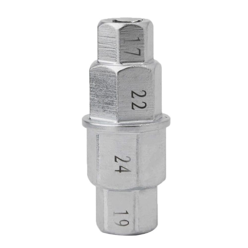 Features:Designed for easy installation removal adjustment of front tire axles on sport or dirt bikes with hexagonal axle holes.Can be used on an array of bikes metric hex sizes of 17mm 19mm 22mm and 24mm.Constructed from solid chrome-moly (Cr-Mo) steel for strength and longevity.Single-handedly complete a tire change within minutes.Maximum torque of 150 pounds on a 3/8-inch square drive.Specifications:Material: MetalColor: Black Silver (optional)4 metric hex sizes: 17mm 19mm 22mm 24mmPackage Size: 5*3*3cm / 1.97*1.18*1.18in.Package Weight: 50g / 1.76oz.Package List:1 * Hex Axle Tool