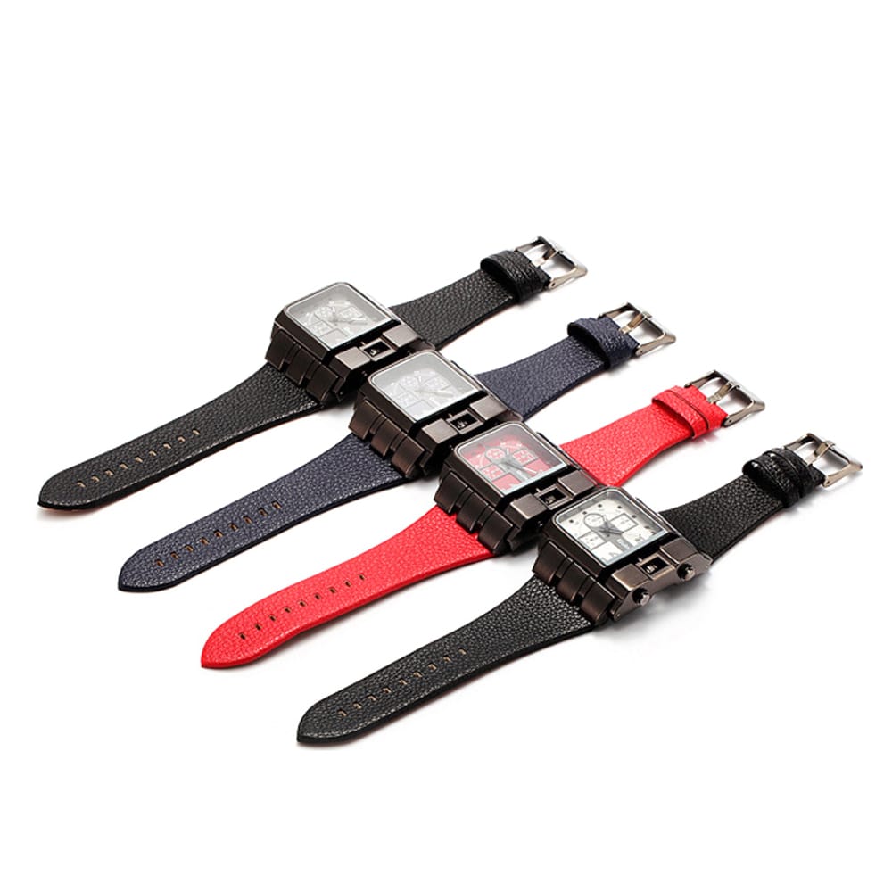 This is a fashion men watch has personalized and antique appearance which is suitable for every occasions and matches with your apparel.Features:Unique designs embodies your special temperament.High precision quartz movement with the latest breakthrough technology.Quartz movement provides precise and accurate time keeping.12 hour mode watch fashionable and luxurious.Smooth leather band with buckle won't scratch your wrist or cloth.Suitable for various occasions like exercise and business meetings.A perfect gift for your male friends.Specifications:Type: 1#~5# (optional)Band material: PU leatherCase material: alloyDial window material: mineral glassCase size: 60 * 52mm / 2.36 * 2.05inBand width: 22mm / 0.87inBand length: 260mm / 10.24inPackage size: 150 * 30 * 20mm / 5.9 * 1.18 * 0.79inPackage weight: 139g / 4.9ouncesNote:1.Due to the different display screen and light effect the actual color of the item might be slightly different from the color showed on the pictures.2.The watch is 3 ATM water resistant. It is NOT suitable for diving swimming snorkeling water-related work.Package List:1 * Wrist Watch