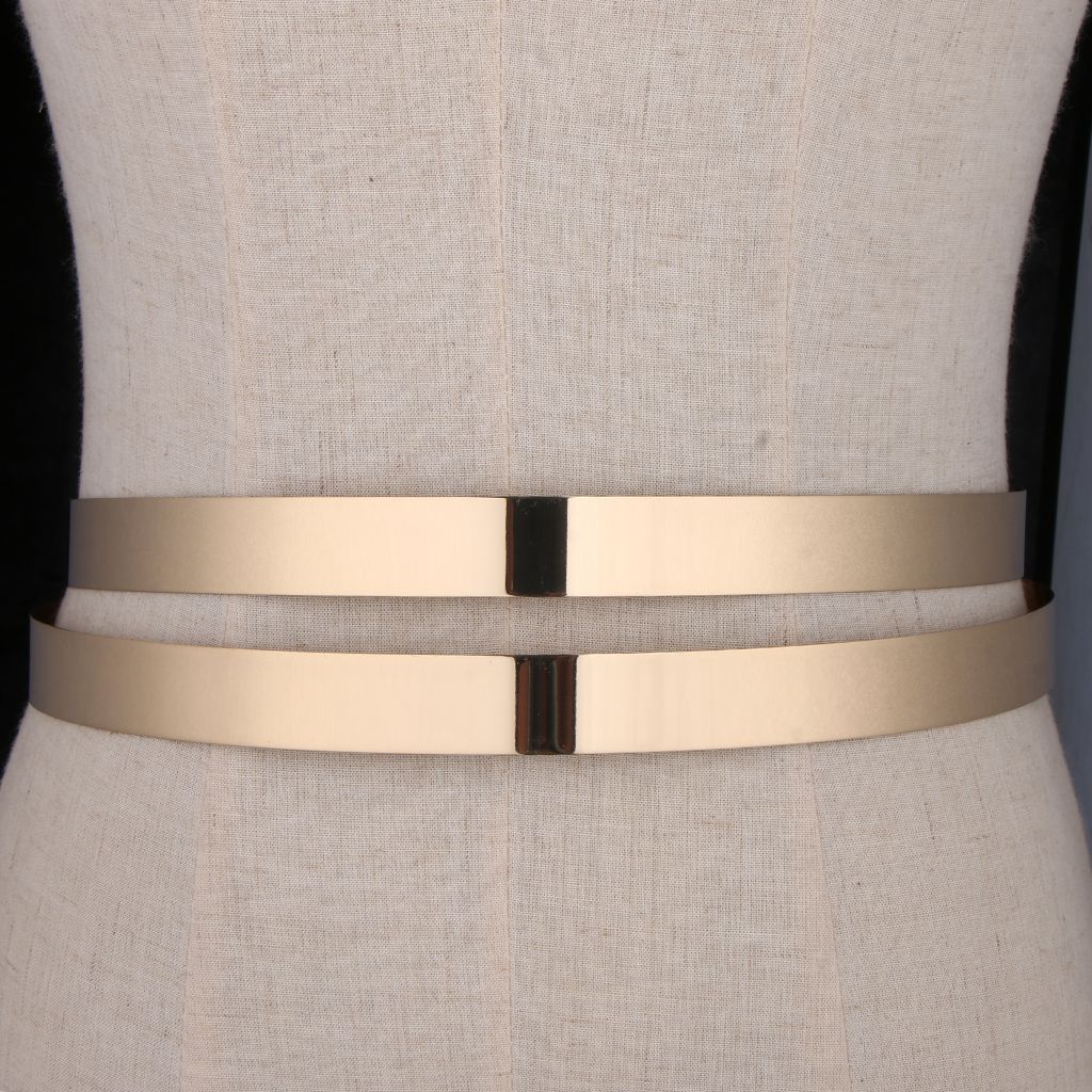 - Gold plated metal front belt, metallic color and mirror like effect, bling metal showing fashion and stylish, these belts look elegant and amazing.
