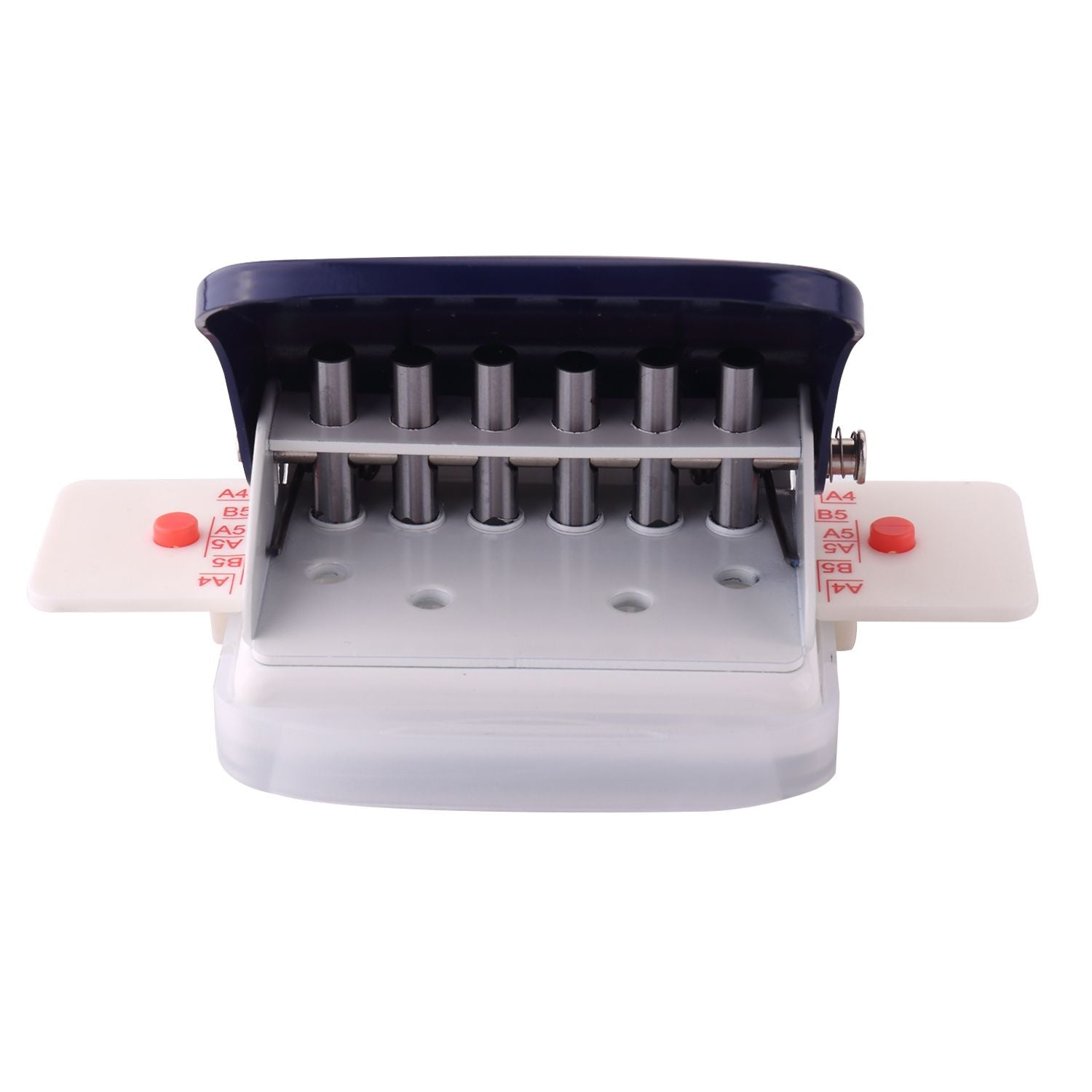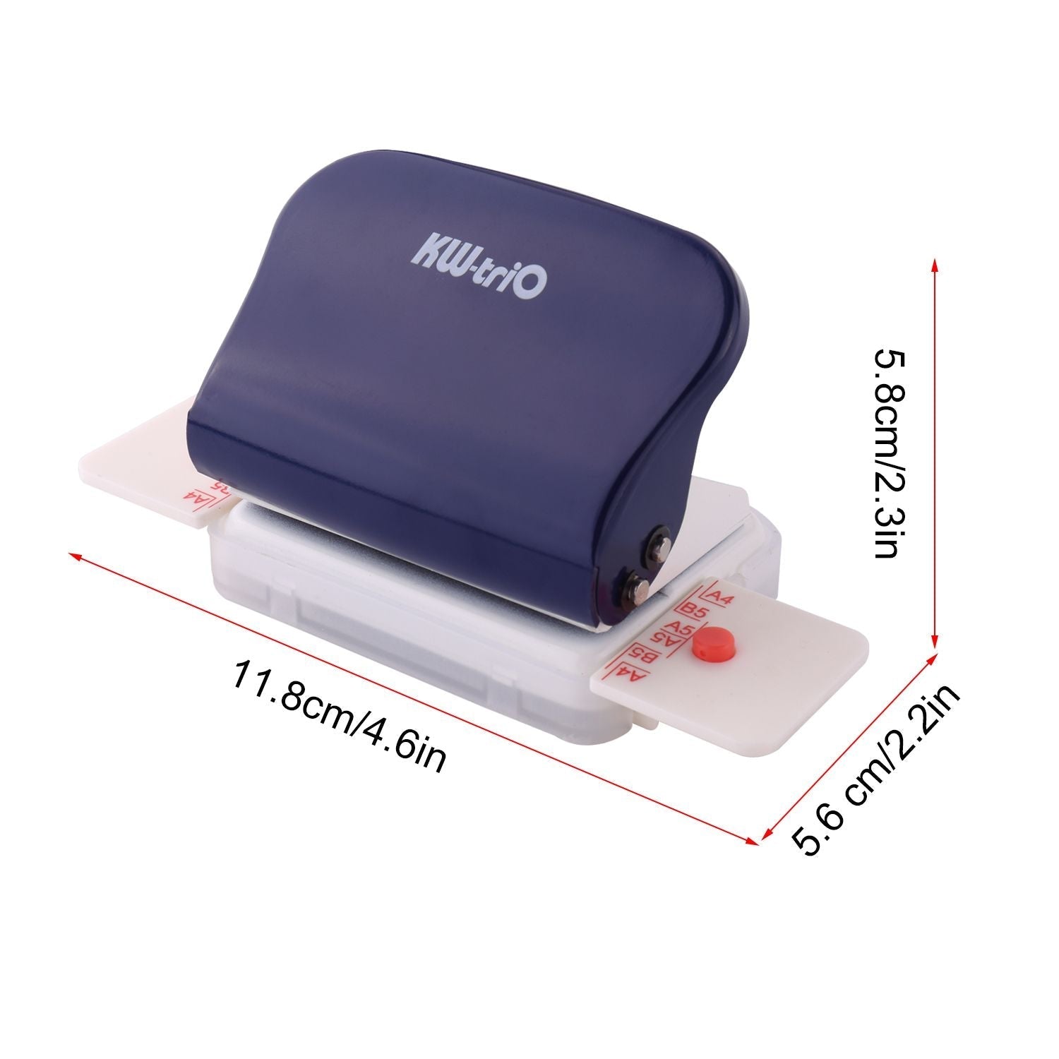 Features:6-hole loose-leaf hole punch suitable for binding 20/26/30-hole loose-leaf notebooks hand accounts etc.Punches up to 5 Sheet(80 gsm) with 6mm diameter holes and 9.5mm hole spacing.DIY creative punching you can customize the number of punching after mastering the usage method.Positioning posts and rulers are provided on both sides of the hole puncher making it easy to determine the location of the hole punch.All-metal paint body sturdy and durable. Flip-open plastic tray can collect paper scraps non-slip and protect the desktop.Specifications:Brand: KW-trioMaterial: Metal + ABSColor: Blue/ Green/ White/ Pink(optional)Quantity of Hole: 6Hole Diameter: 6mmFeed Depth: 7mmSheet Capacity: 5 SheetItem Size: 11.8 * 5.6 * 5.8cm/ 4.6 * 2.2 * 2.3inItem Weight: 170g/ 6.0ozPackage Size: 7.7 * 5.7 * 3.75/ 3.0 * 2.2 * 1.5inPackage Weight: 200g/ 7.1ozPacking List:1 * Puncher