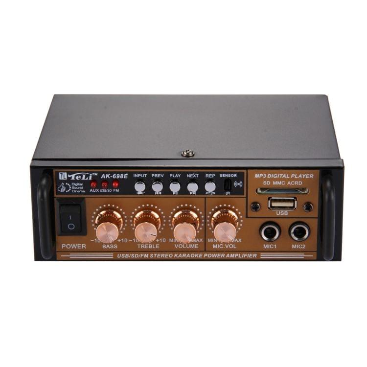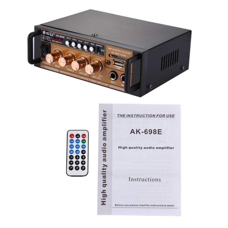 AK-698E HiFi Stereo Audio Power Amplifier 180W + 180W Digital Player with Remote Control, Support FM / SD / MP3 Player / USB, AC 220V / DC 12V(Black)