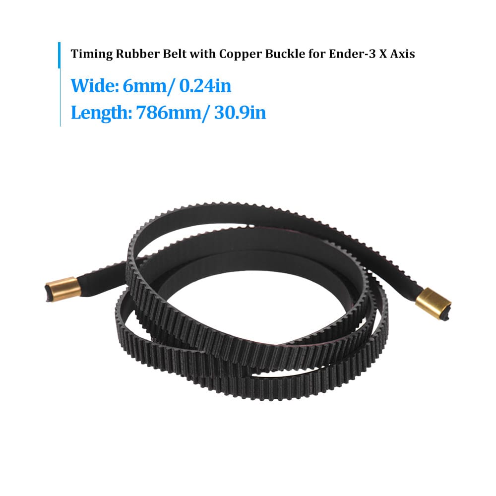 Features:Rubber opening timing belt with copper buckle suitable for Ender-3 X axis.Length: 786mm / 30.9inch width: 6mm / 0.24inch.High-quality rubber good workmanship works great with your 3D printer.Perfect for building a 3D printer from scratch or upgrading your existing machine.Specifications:Material: RubberShape: Open timing beltType: 2GT-6Fit for: Ender-3 X-axisWide: 6mm/ 0.24inLength: 786mm/ 30.9inItem Weight: 7.9g/ 0.27ozPackage Size: 9.4 * 6 * 1cm / 3.7 * 2.4 * 0.4inPackage Weight: 9g/ 0.31ozPackage List:1 * Timing Belt