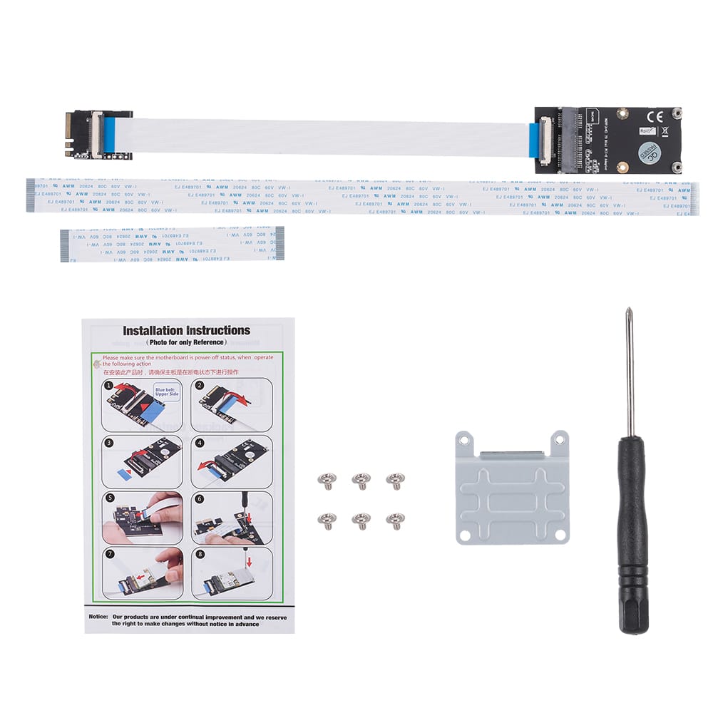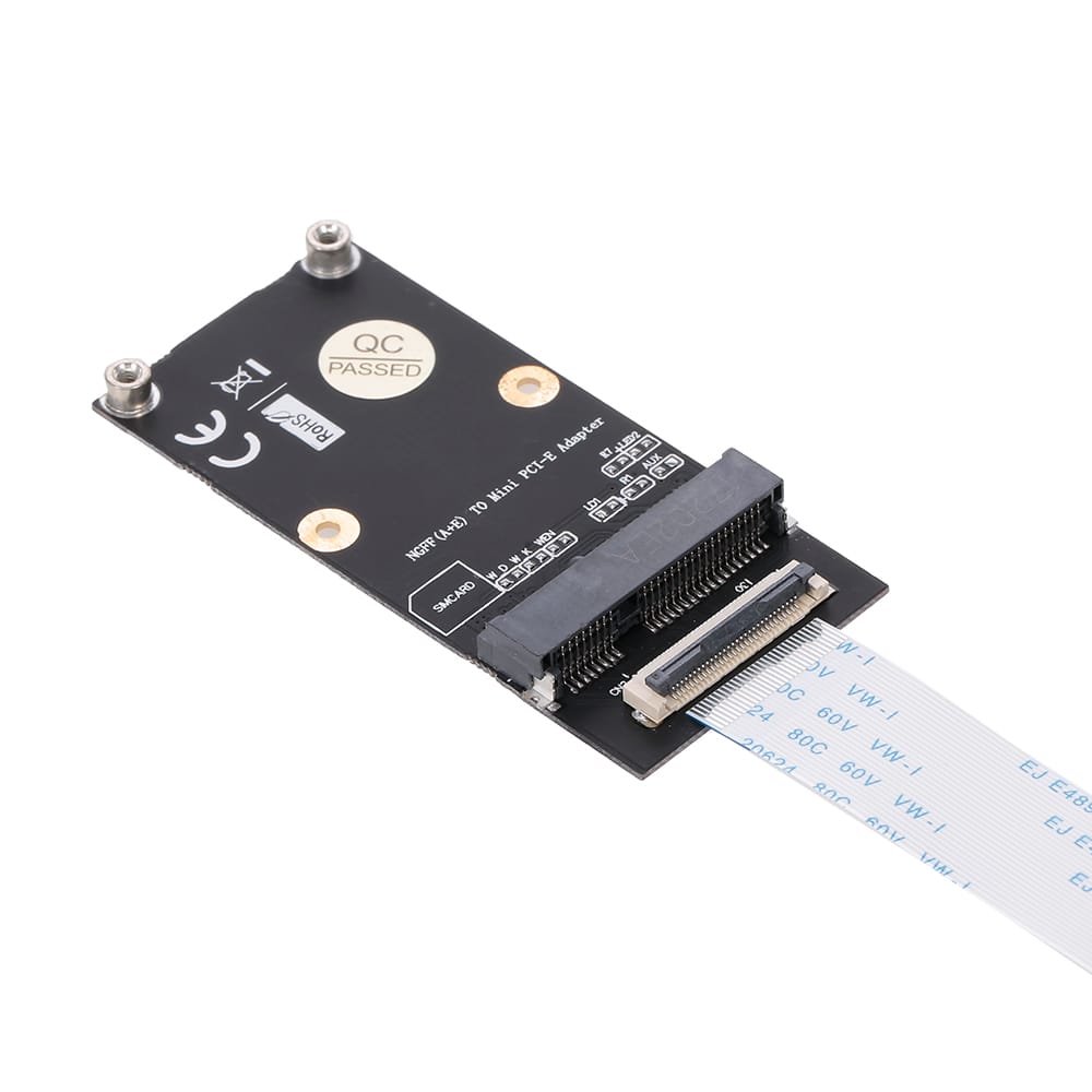 Features:This adapter is designed to covert mini PCI-E WIFI card to NGFF(M.2) KEY A/E/A+E interface of the motherboard.Suitable for half-size (30x26.8mm)and full-size (30x50mm) mini PCI-E card.Supports only M.2 key A/E and doesn't support Key M.Easy installation with no additional driver required.Supports for Windows WinCE Linux iMAC OS etc.The adapter card does not changes any performance of the WIFI card.Specification:Item: NGFF A+E to Mini PCI-E AdapterSupported OS: For Windows/WinCE/Linux/iMAC OSItem Weight: 10g / 0.35ozPackage Size: 32 * 9cm / 12.6 * 3.5inchesPackage Weight: 27g / 0.95ozPackages Include:1 * NGFF A+E to Mini PCI-E Adapter3 * FPC Cables(10cm 20cm 30cm)1 * Metal Extender Bracket1 * Screw Driver6 * Screws