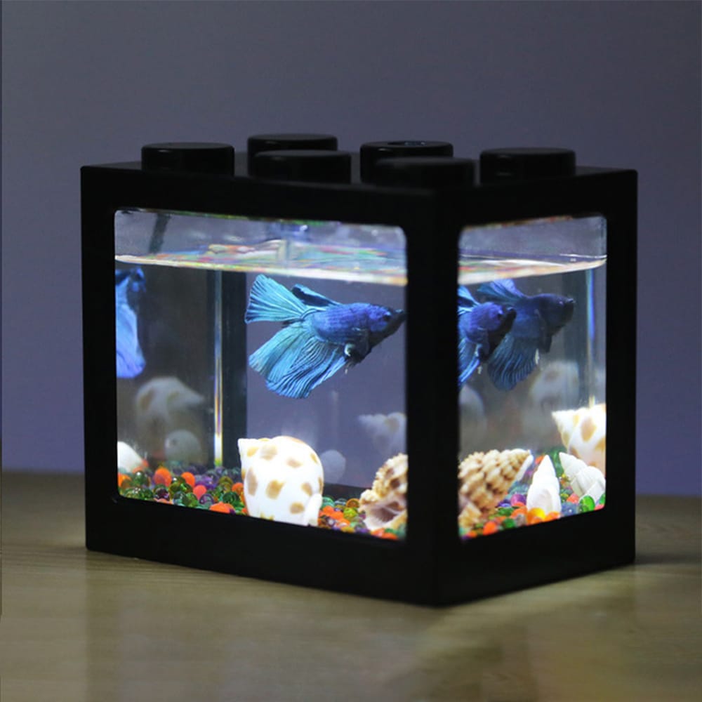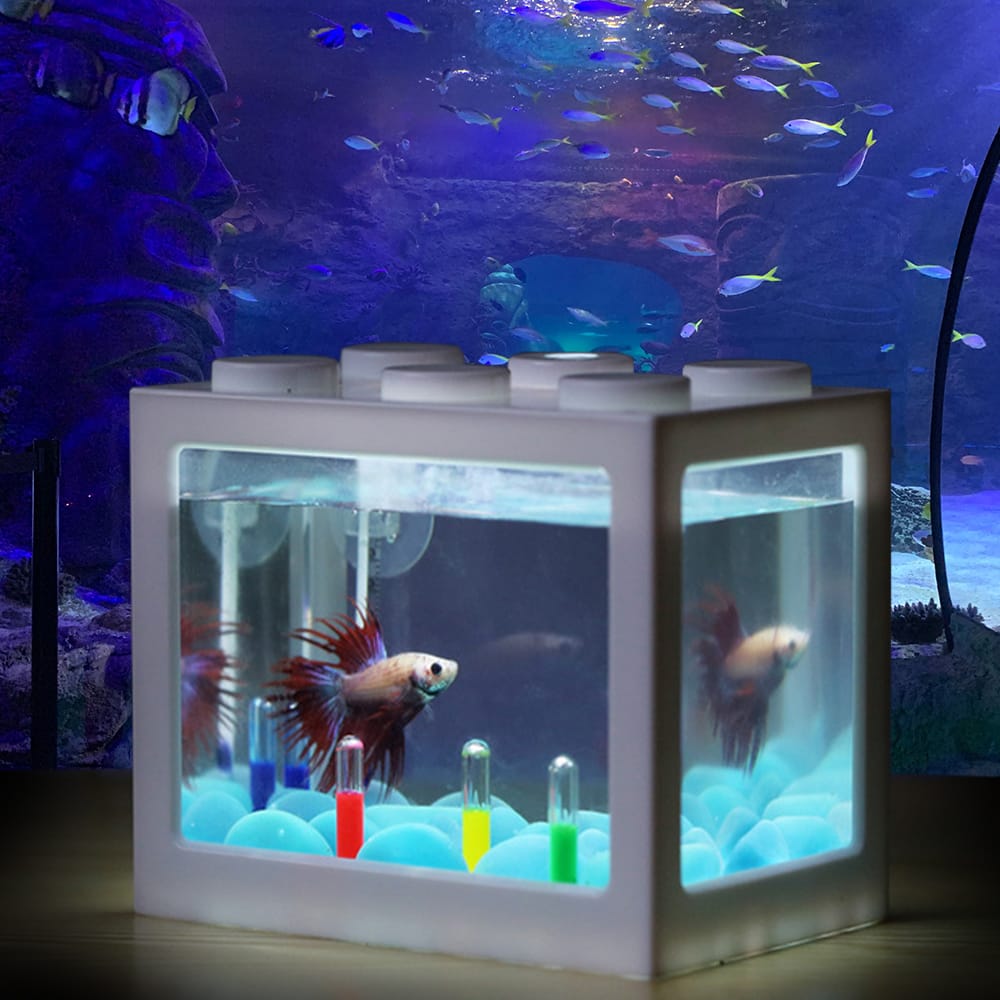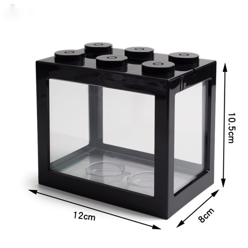 Features:White LED light. It can be charged by the computer mobile power supply and phone adapter.You can freely combine and superimpose very fun The night view of the fish tank is very charming.The combination of the fish tank is a very beautiful ornament. Put it at home to add landscape.It is made of ABS plastic and durable.Creative overlay and superimposed raising a variety of small fish.You can design the fish tank landscape.Specifications:Item name: Mini Fish TankMaterial: ABS + AS PlasticColor(optional): White / Black / Blue / Red / TransparentProduct weight: 155gProduct size: 12*10.5*8 cmPackage information:Package Weight: 200gPackage size: 13*11*9 cmPackage list: 1*Mini Fish Tank with LED light