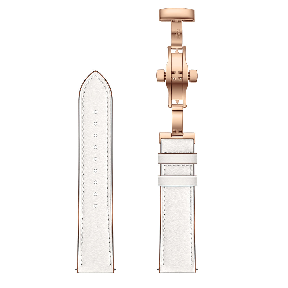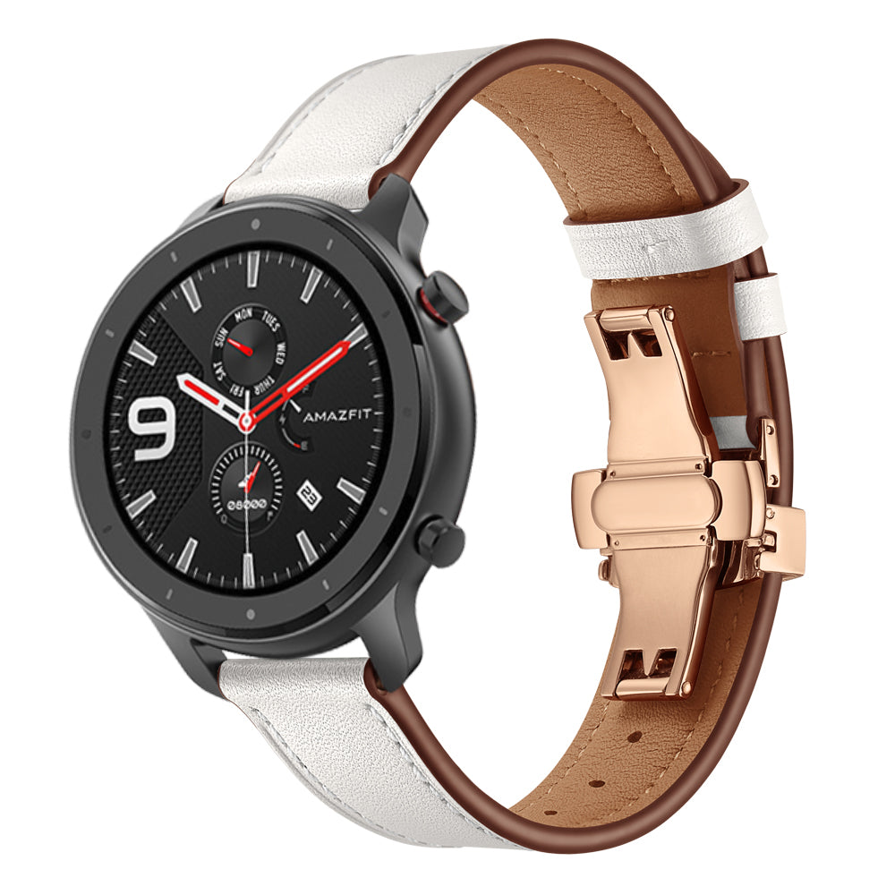20mm Genuine Leather Watch Strap for Huami Amazfit GTR 42mm - Rose Gold Butterfly Buckle / White