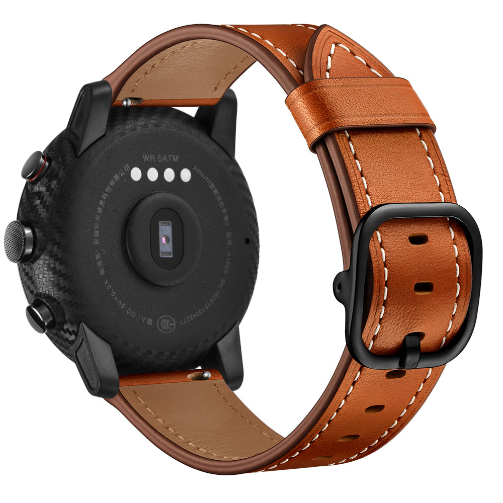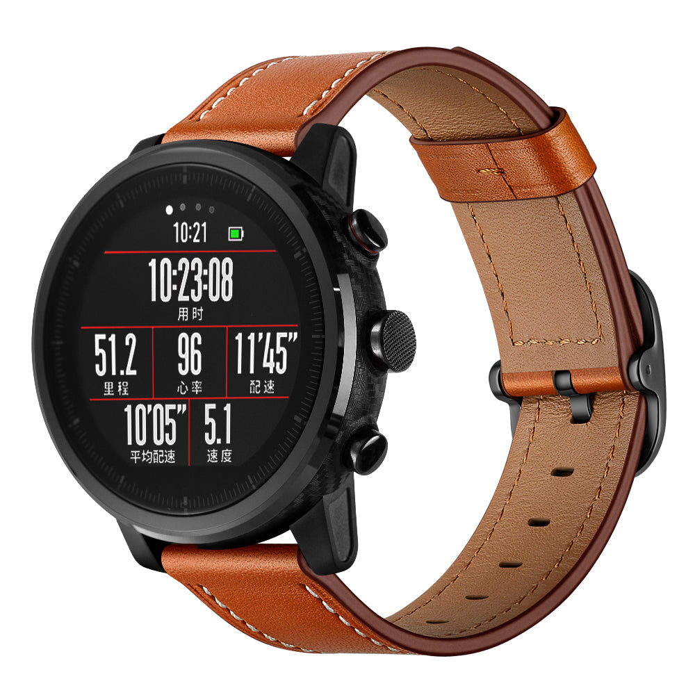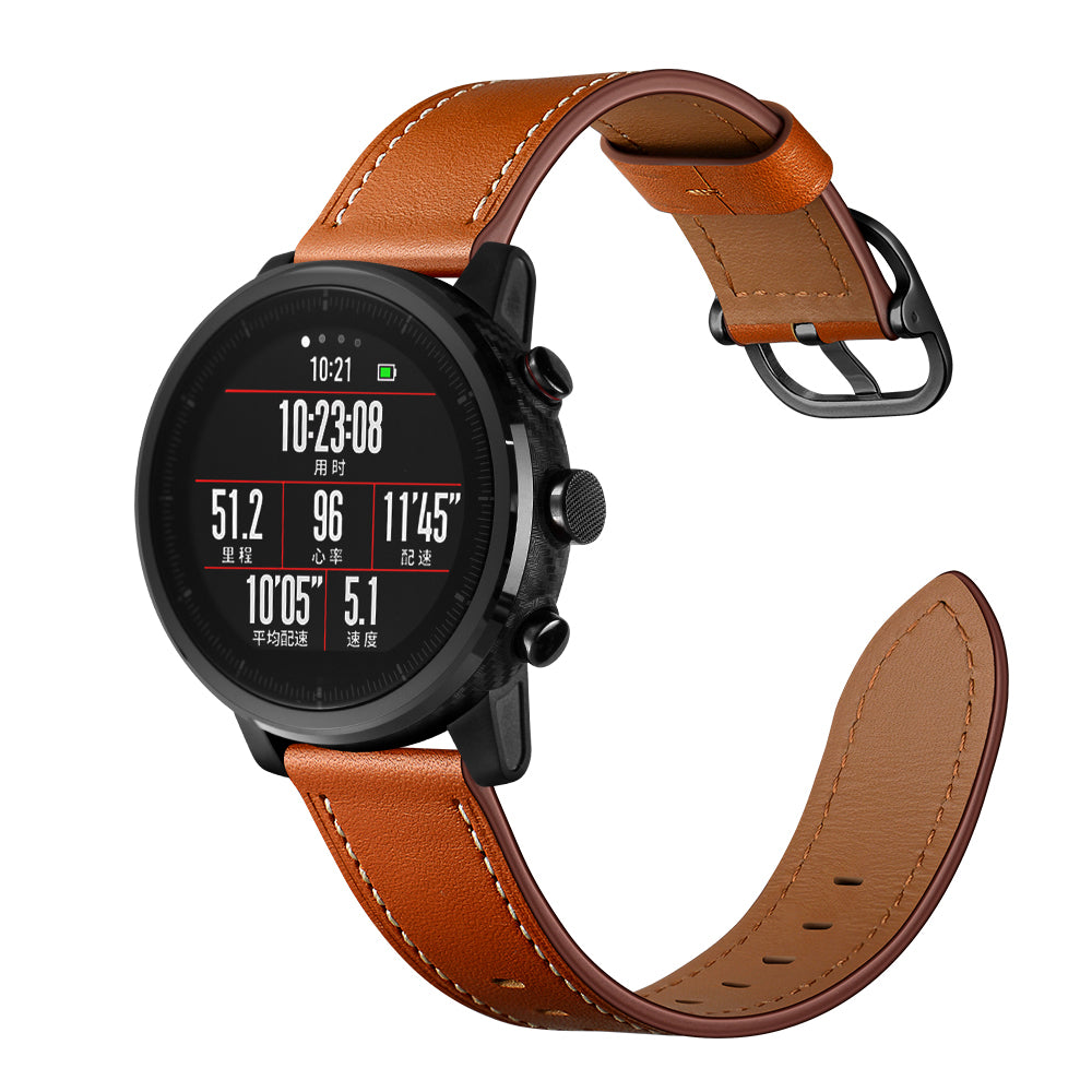 22mm Cowhide Leather Watch Band (DS Style) for Huami Amazfit 1/2S - Brown