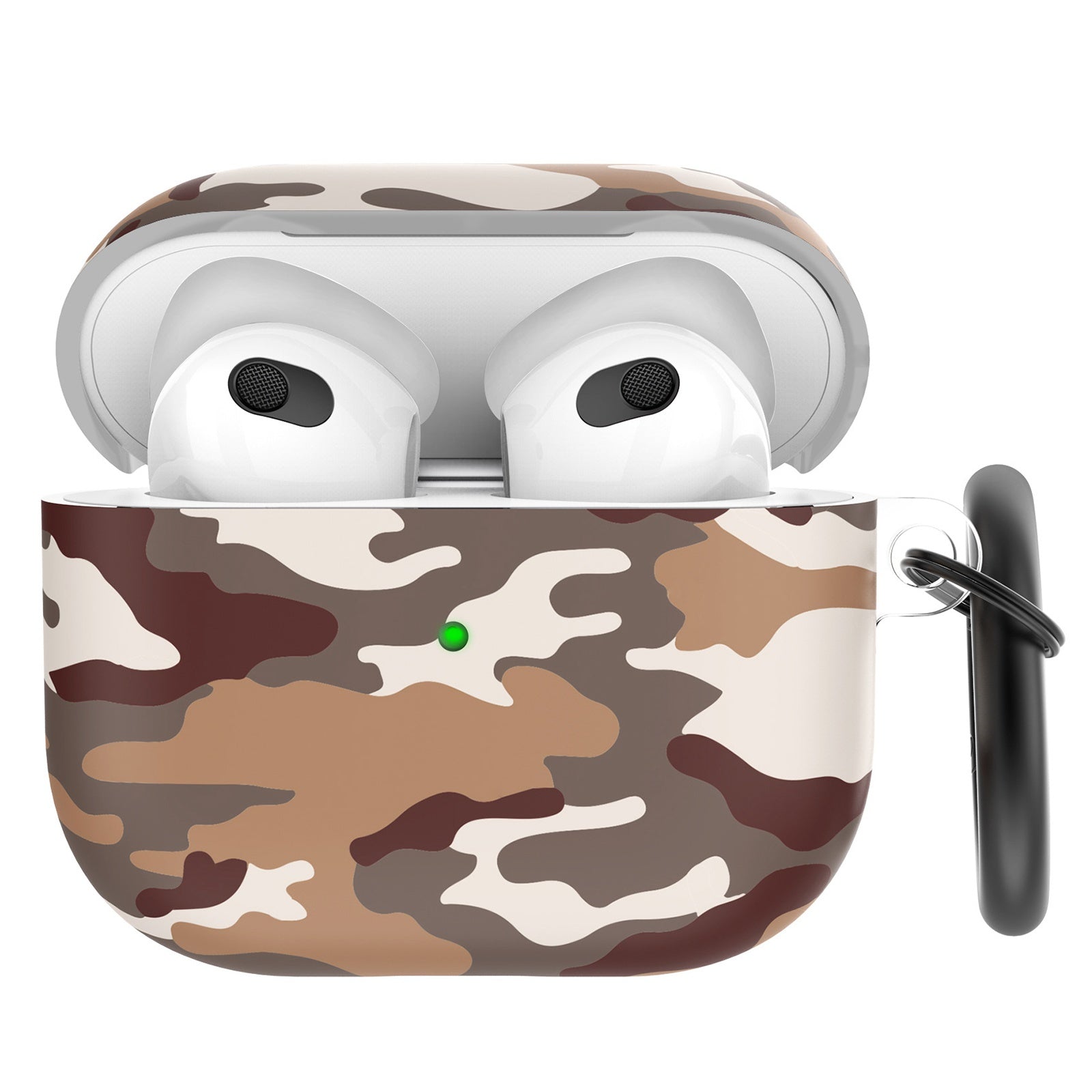 AHASTYLE PT142-3 for Apple AirPods 3 Anti-drop Earphone Case Pattern Printing Earbud Charging Box Two-Piece Design TPU Cover with Carabiner - Brown Camouflage