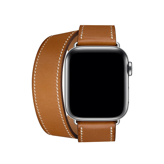Double Tour Genuine Leather Watch Band Replacement for Apple Watch Series 8 45mm / Ultra 49mm / 7 45mm / Series 6 SE / SE (2022) / 5 4 44mm, Series 3 / 2 / 1 42mm - Brown