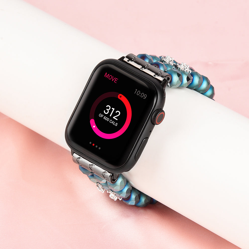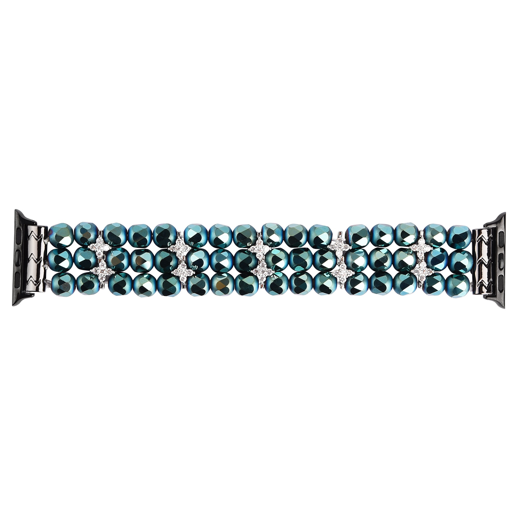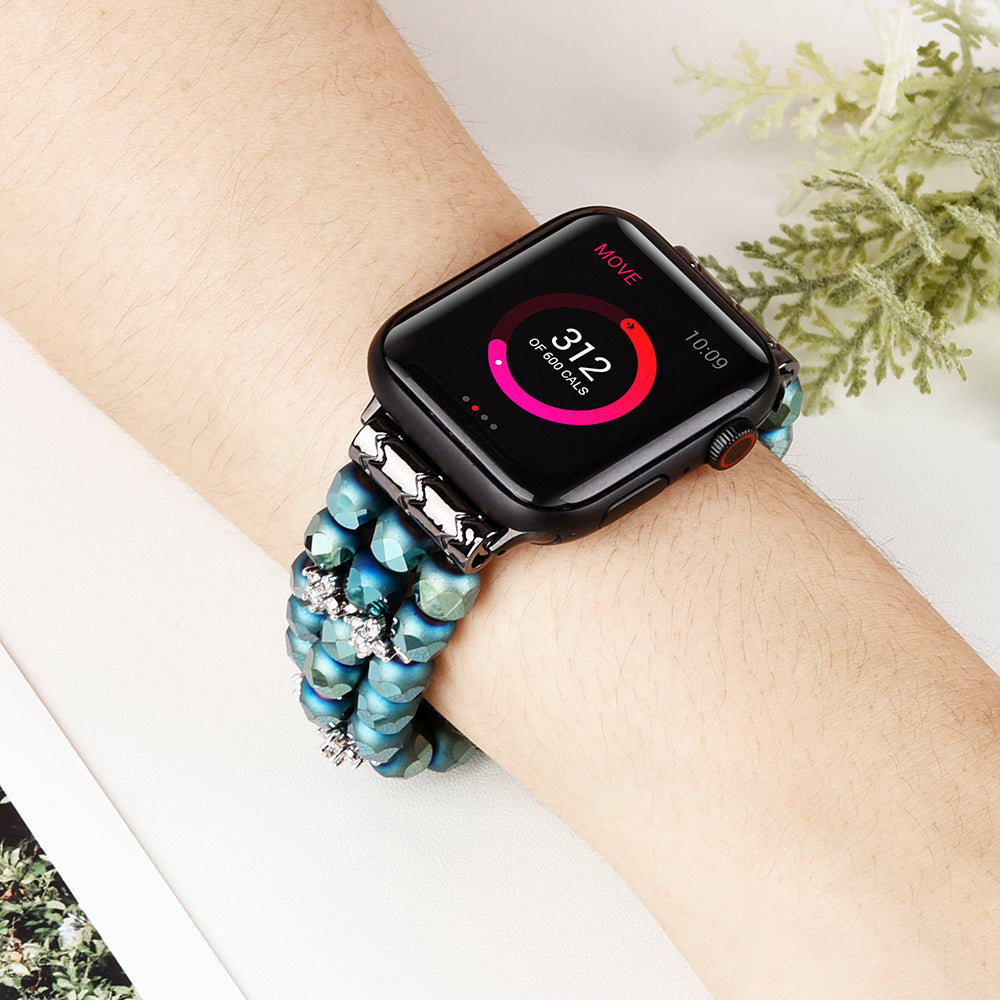 Flower Shape Decor Crystal Beads Bracelet Smart Watch Strap Replacement Wrist Band for Apple Watch Ultra 49mm / Series 8 45mm / 7 45mm / Series 6 / 5 / 4 / SE 44mm / SE (2022) 44mm Series 3 / 2 / 1 42mm - Blue