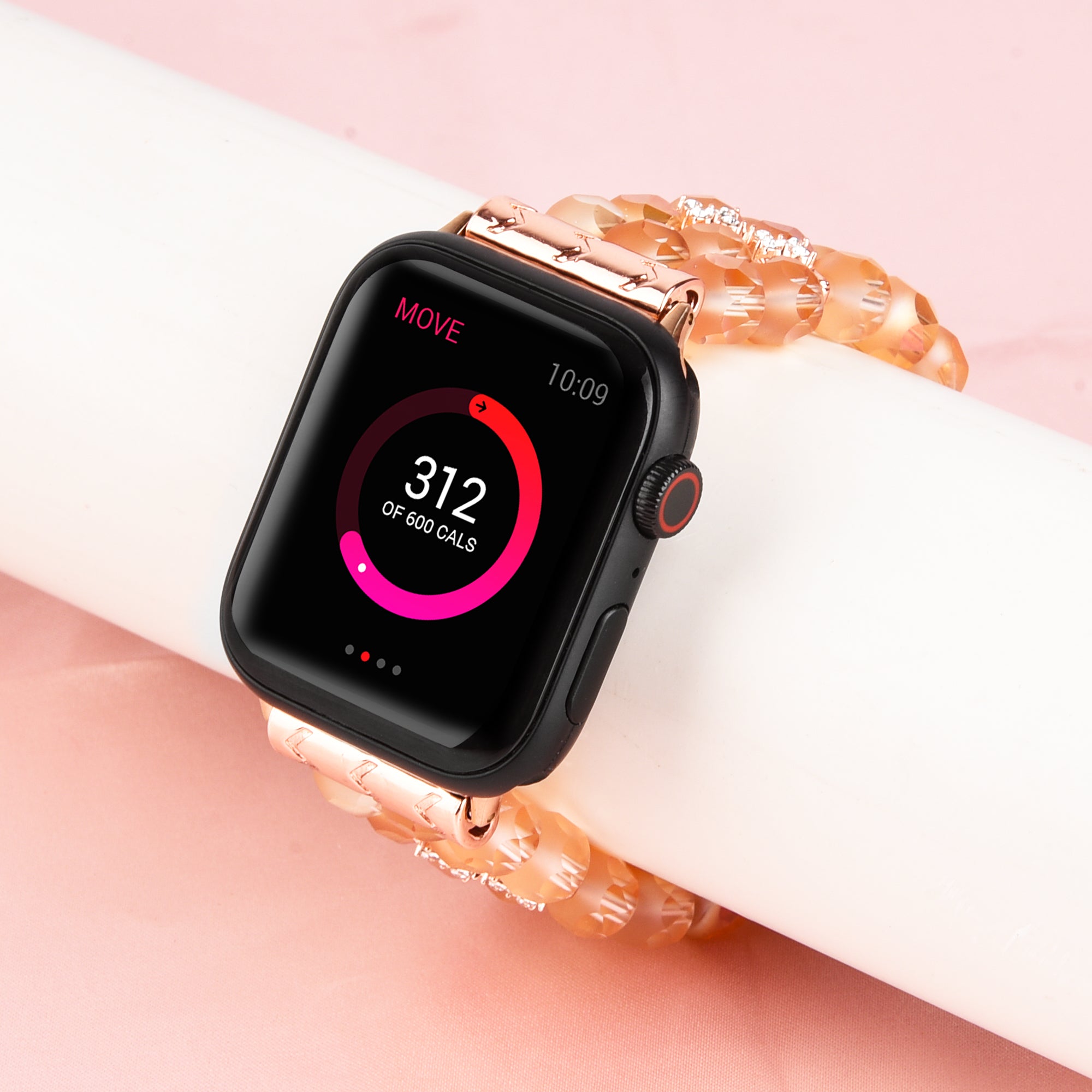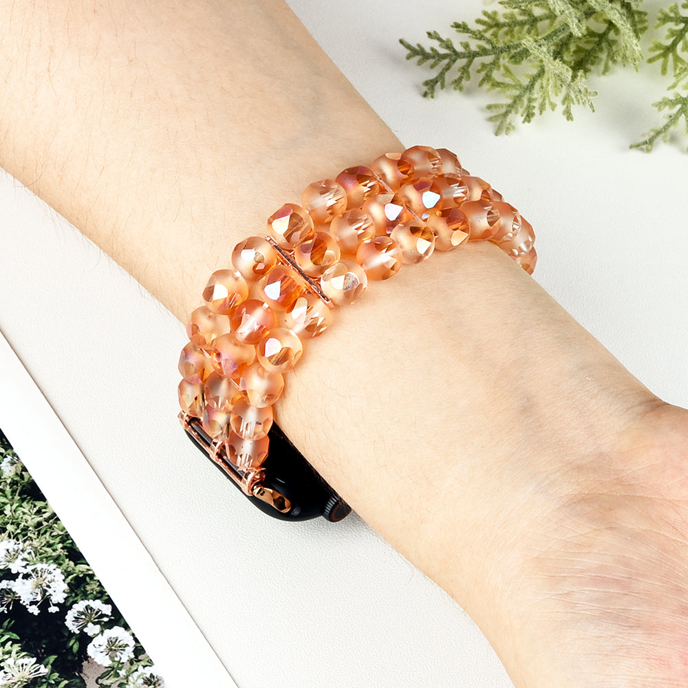 Flower Shape Decor Crystal Beads Bracelet Smart Watch Strap Replacement Wrist Band for Apple Watch Ultra 49mm / Series 8 45mm / 7 45mm / Series 6 / 5 / 4 / SE 44mm / SE (2022) 44mm Series 3 / 2 / 1 42mm - Orange