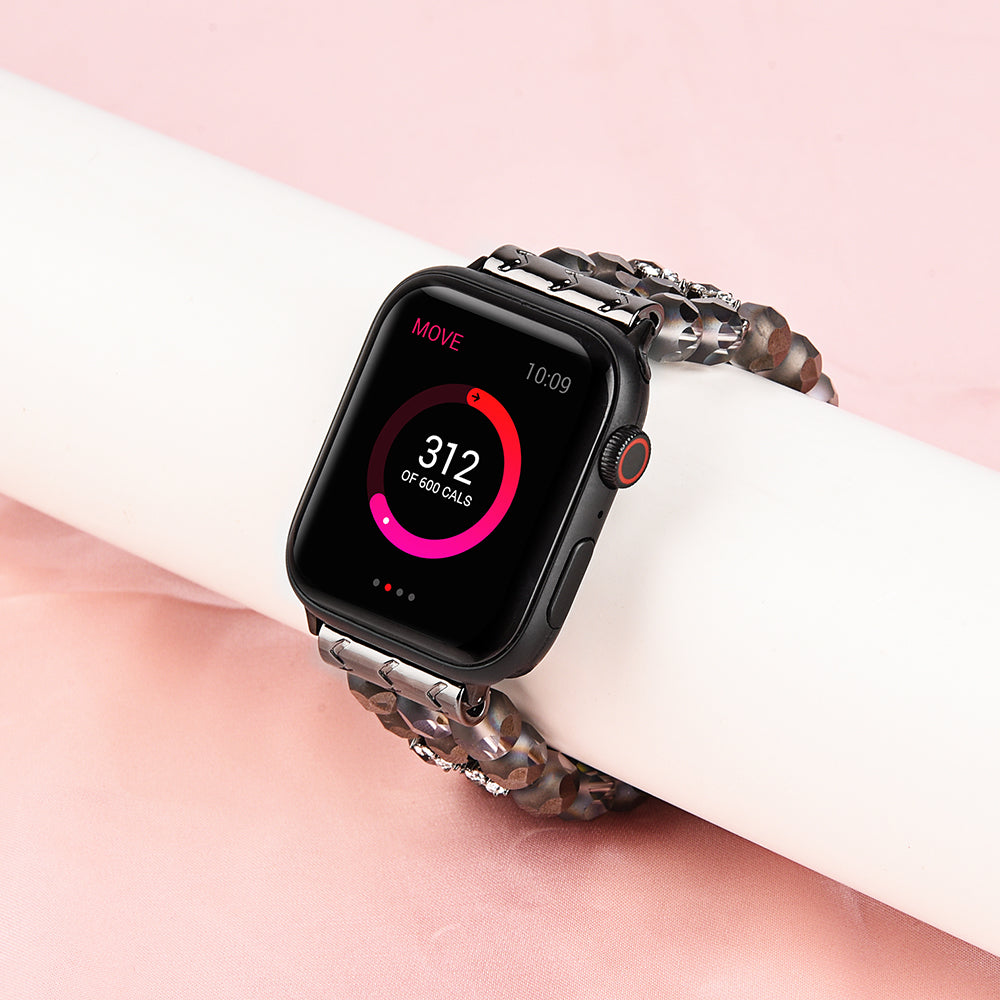 Flower Shape Decor Crystal Beads Design Replacement Watch Strap Wrist Band for Apple Watch Series 8 41mm / Series 7 41mm / Series 6 / 5 / 4 / SE / SE(2022) 40mm / Watch Series 1 / 2 / 3 38mm - Black