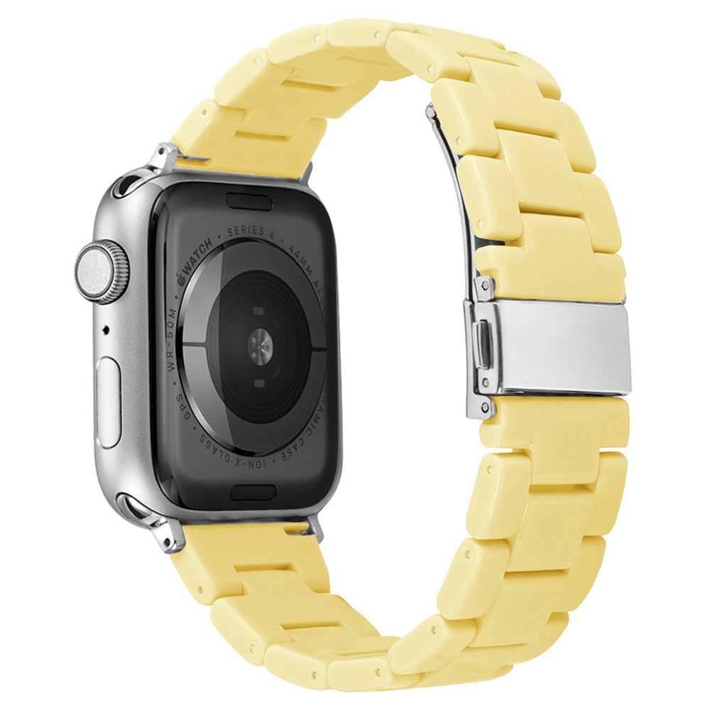 For Apple Watch Series 8 41mm / Series 7 41mm / 6 / 5 / 4 / SE / SE(2022) 40mm / 3 / 2 / 1 38mm Resin Watchband Sport Watch Replacement Strap with Folding Buckle - Light Yellow