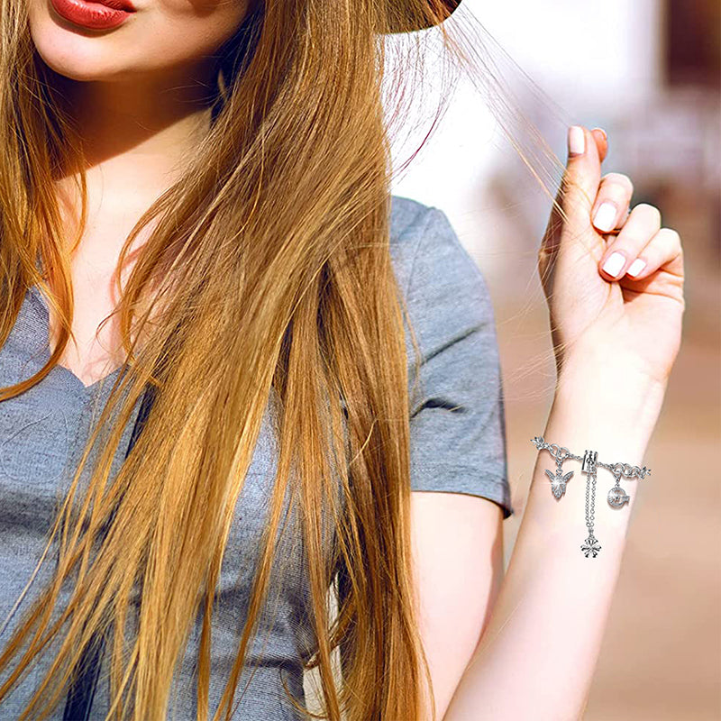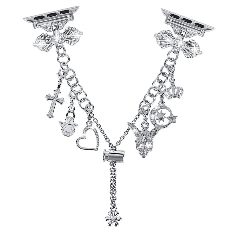 For Apple Watch Ultra 49mm / Series 8 45mm / 7 45mm / SE 44mm / SE (2022) 44mm / Series 6 / 5 / 4 44mm / Series 3 / 2 / 1 42mm Watch Band Multiple Pendant Design Bracelet Wrist Strap - Silver