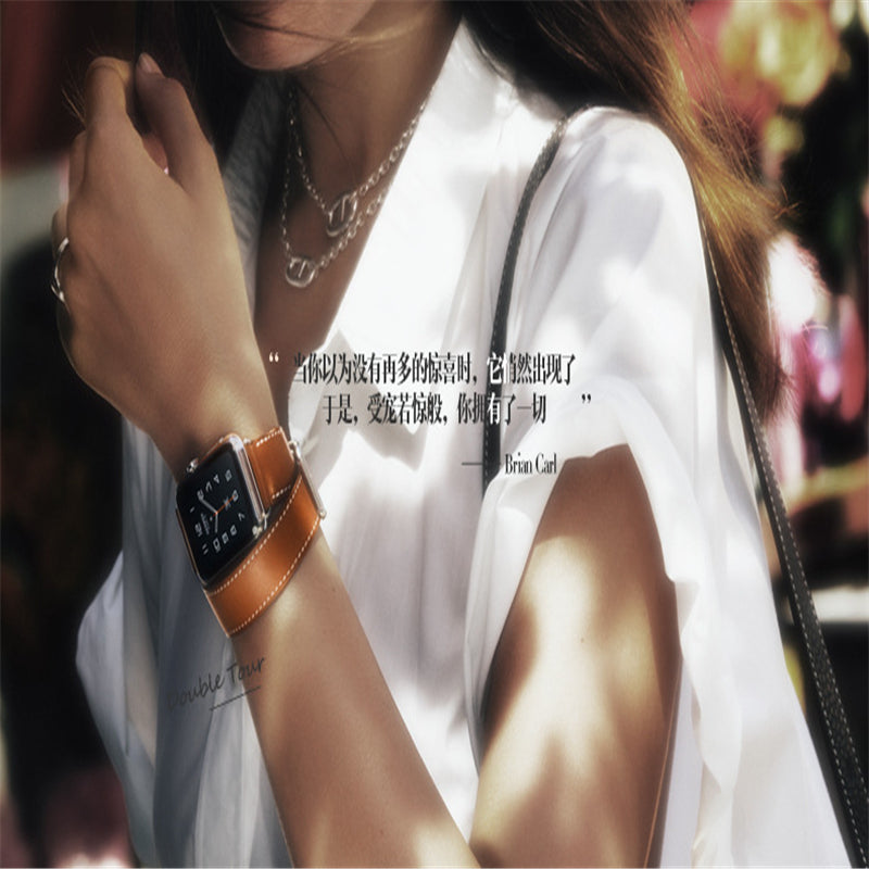 1 x Hermes Style 4-piece Double Tour Genuine Leather Watch Band