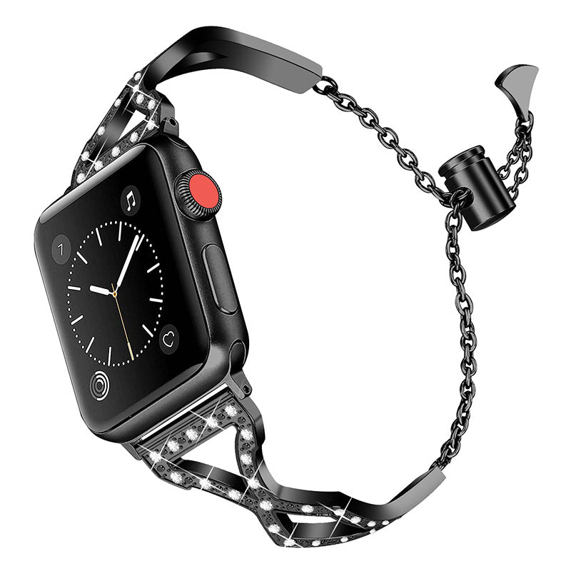 Rhinestone Stainless Steel Metal Watch Band Bracelet Strap Replacement for Apple Watch Ultra 49mm / Series 8 45mm / 7 45mm / SE 44mm / SE (2022) 44mm / Series 6 / 5 / 4 44mm / Series 3 / 2 / 1 42mm - Black