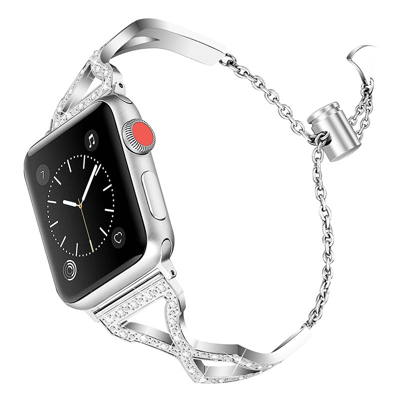 Rhinestone Stainless Steel Metal Watch Band Bracelet Strap Replacement for Apple Watch Ultra 49mm / Series 8 45mm / 7 45mm / SE 44mm / SE (2022) 44mm / Series 6 / 5 / 4 44mm / Series 3 / 2 / 1 42mm - Silver
