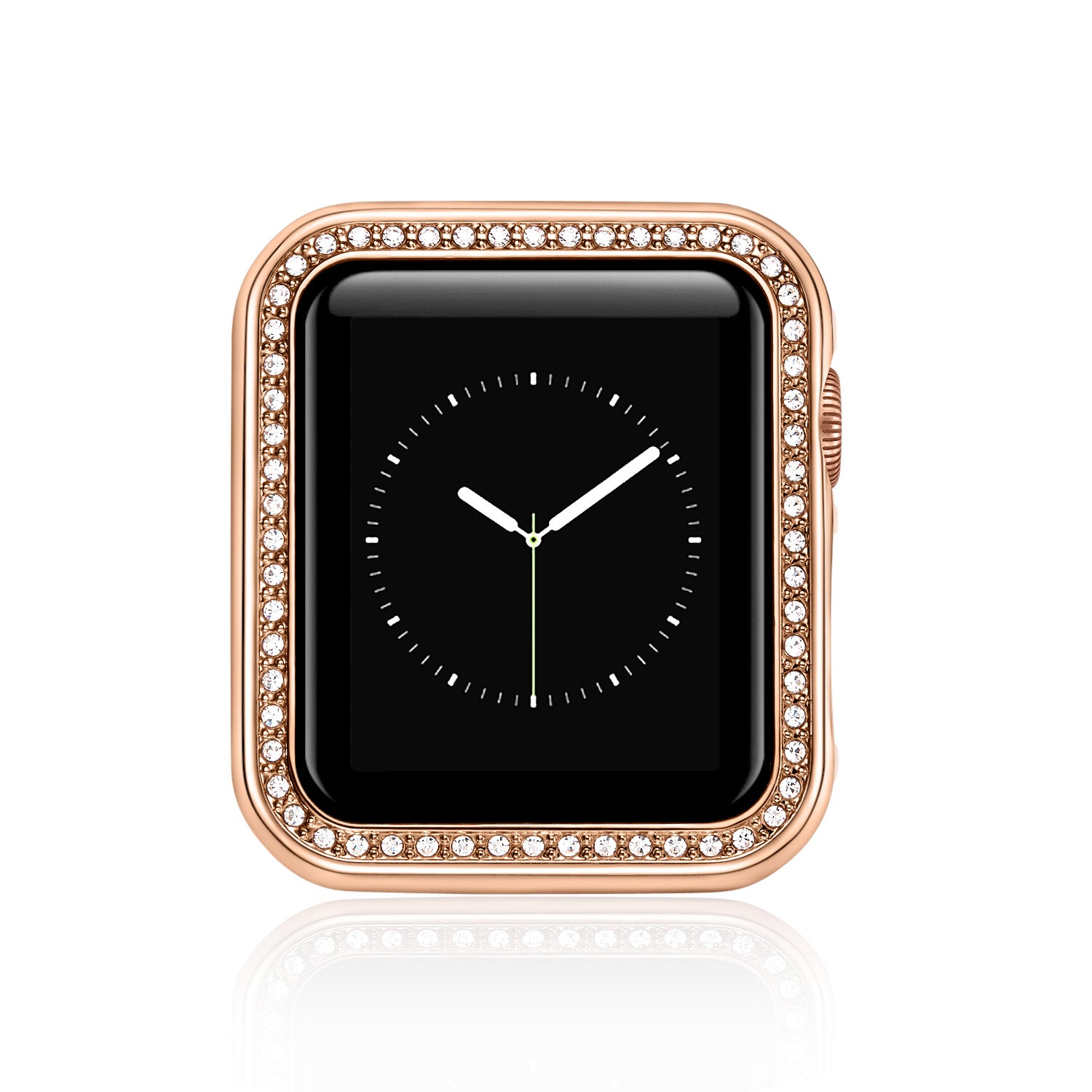 Shiny Rhinestone Aluminum Alloy Protective Case Cover for Apple Watch Series 4 / 5 / 6 44mm / SE 44mm / SE (2022) 44mm - Rose Gold