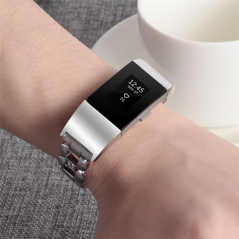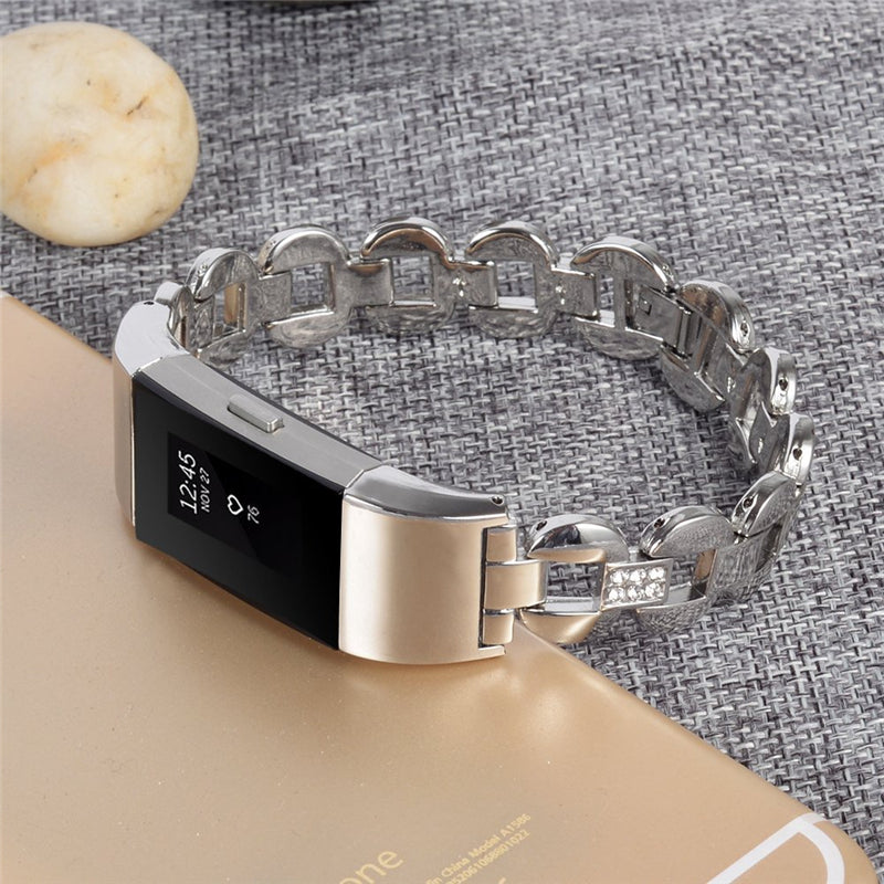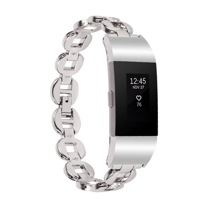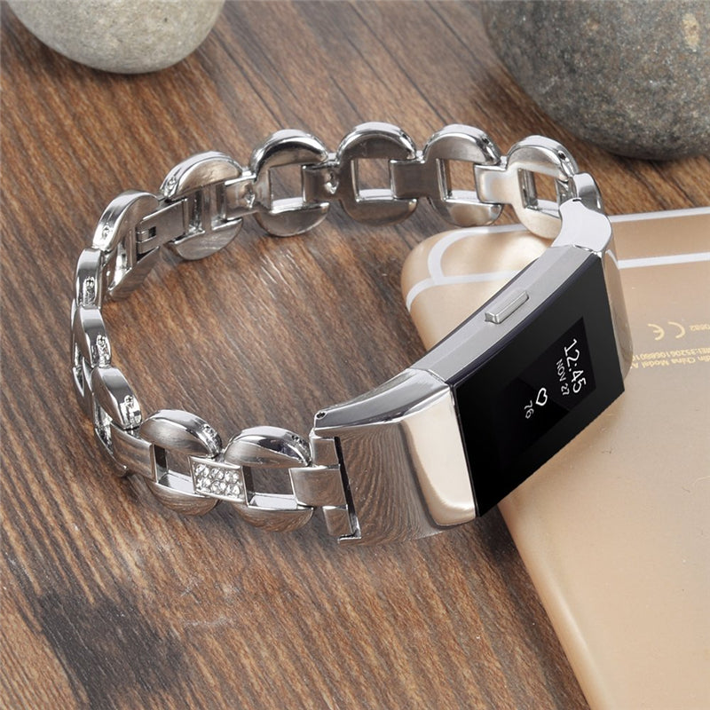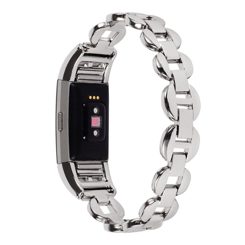 1 x D-shape Rhinestone Decor Stainless Steel Watch Band