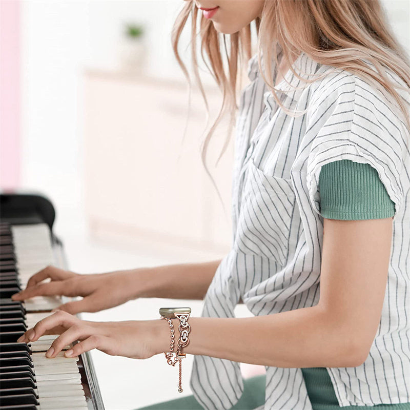 For Fitbit Versa 3/Fitbit Sense Stainless Steel Double Circle Design Hollow Out Smart Watch Band Wrist Strap 20mm - Rose Gold