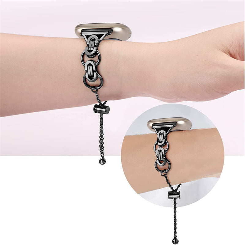 For Fitbit Versa 3/Fitbit Sense Stainless Steel Watch Band Replacement Single Circle Design Wrist Strap 20mm - Black