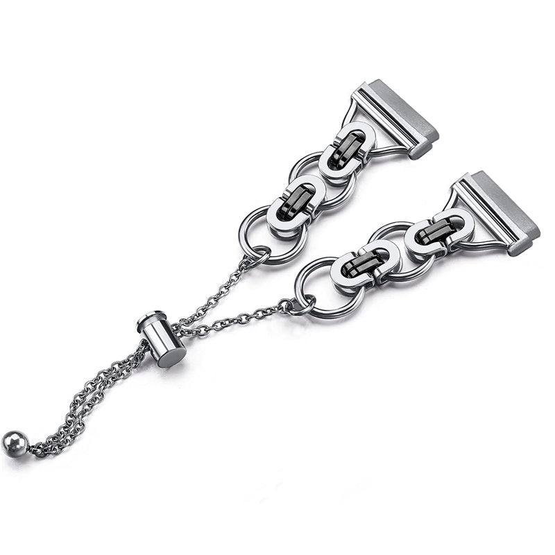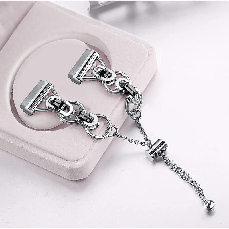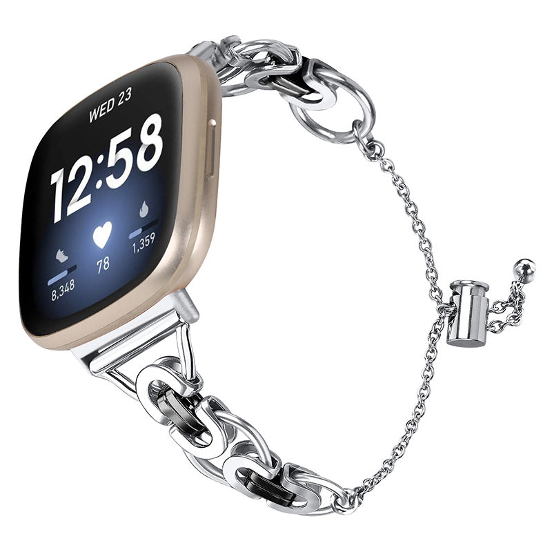 For Fitbit Versa 3/Fitbit Sense Stainless Steel Watch Band Replacement Single Circle Design Wrist Strap 20mm - Silver and Black