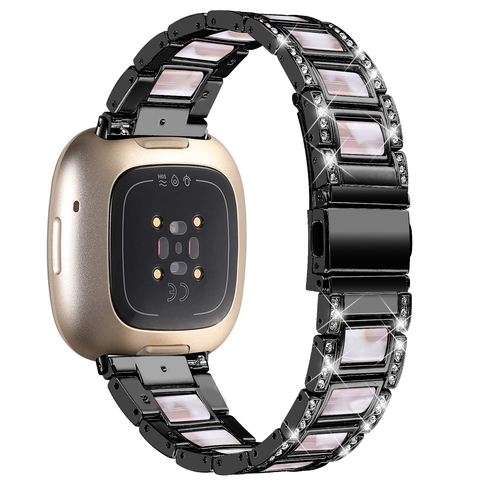 For Fitbit Versa 4 / Sense 2 Resin Watch Strap Stainless Steel Rhinestone Decor Watch Band - Black / Pink Mix