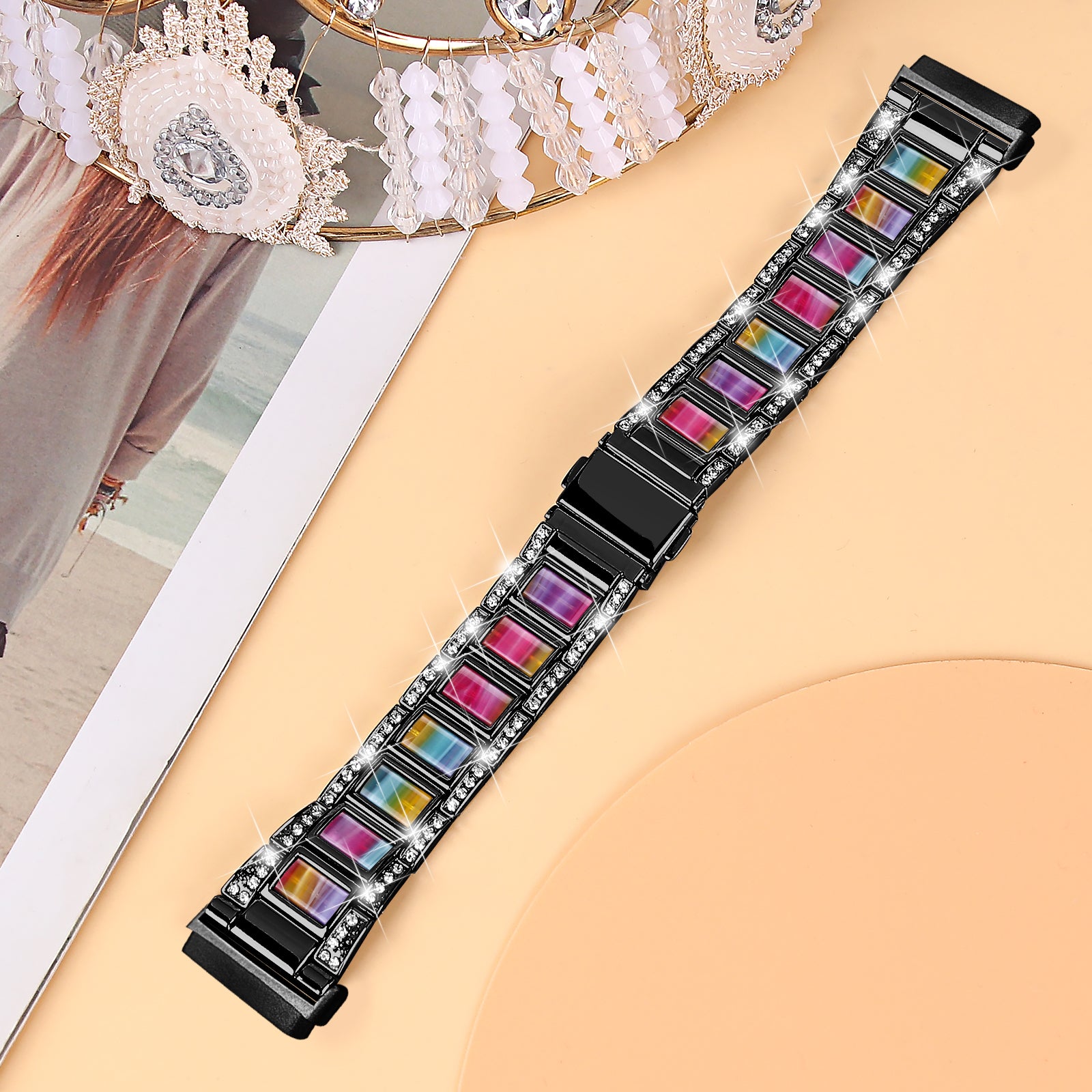 For Fitbit Versa 4 / Sense 2 Resin Watch Strap Stainless Steel Rhinestone Decor Watch Band - Black / Rainbow