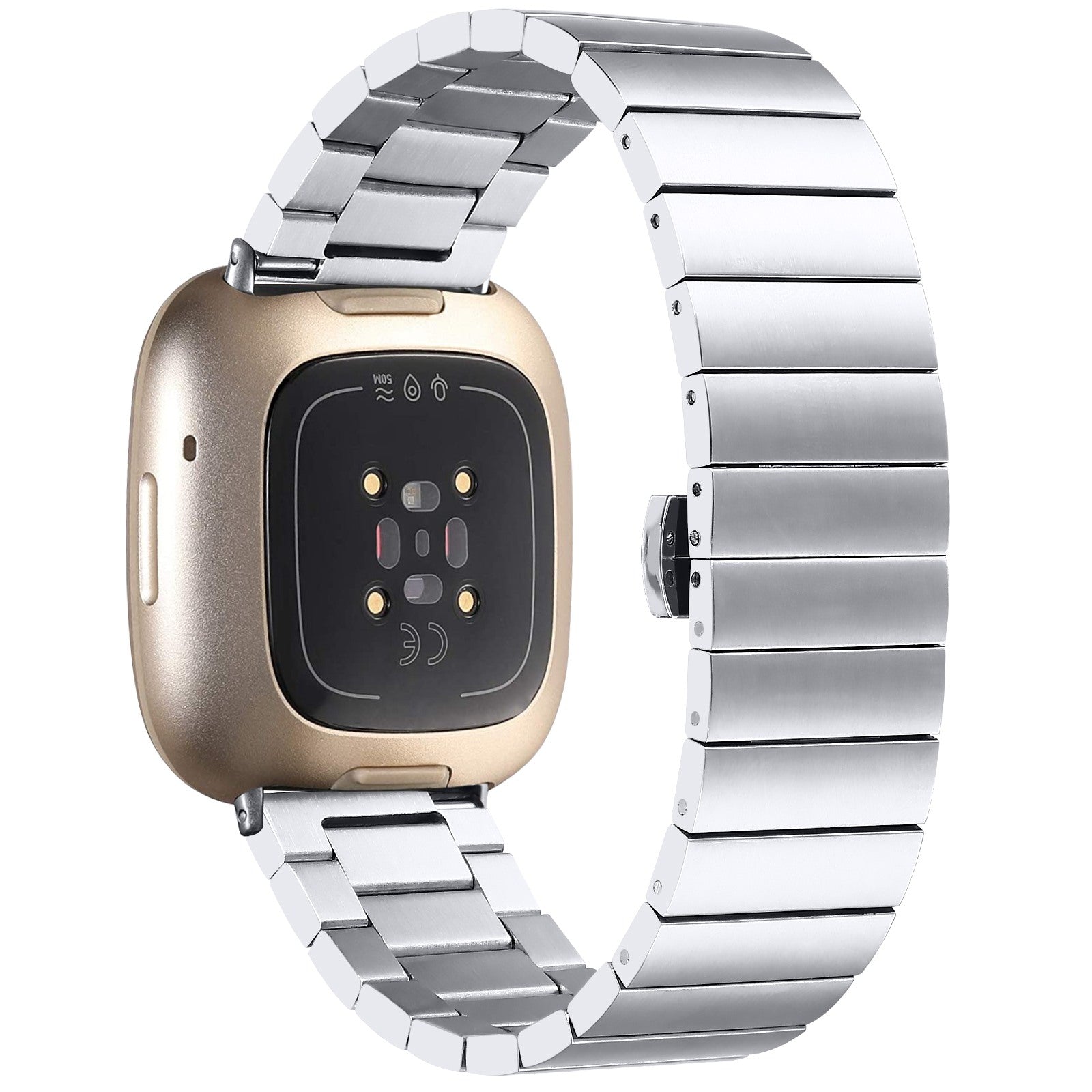 For Fitbit Versa 4 / Sense 2 Smart Watch Band Buckle Design Metal Replacement Wrist Strap - Silver