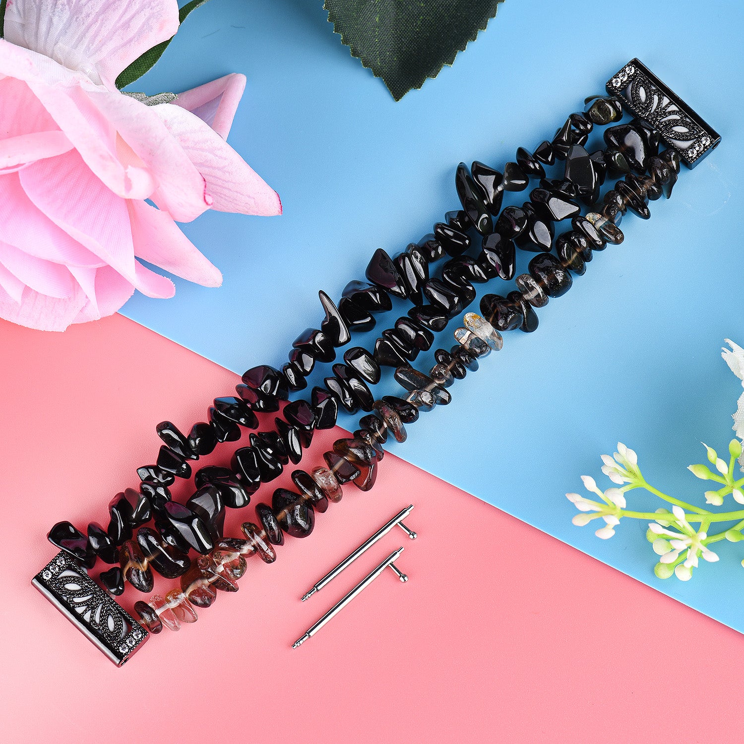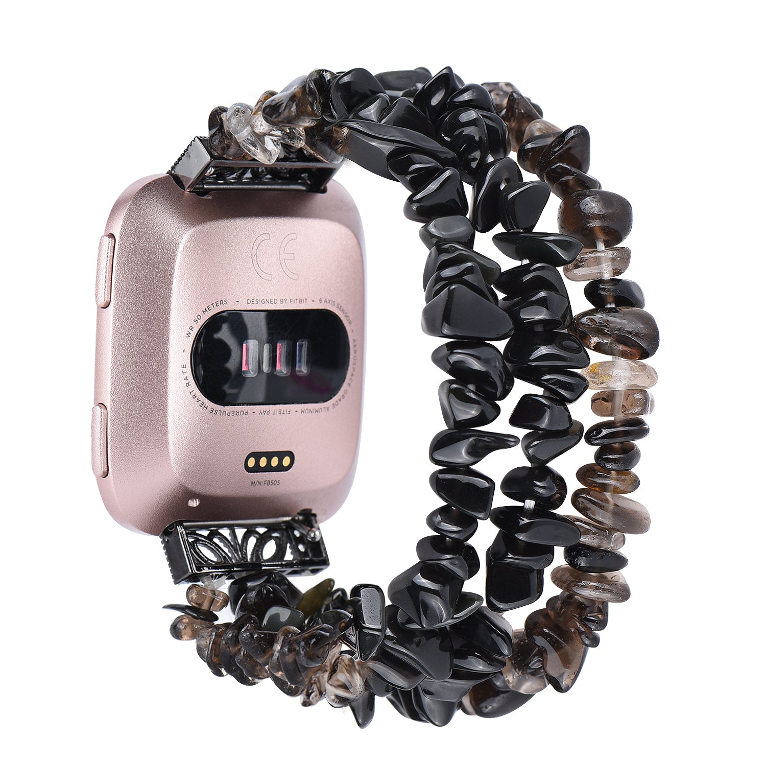 Four Rows Natural Stones Watch Band Strap Wrist Bracelet for Fitbit Versa/Fitbit Versa 2 - Black