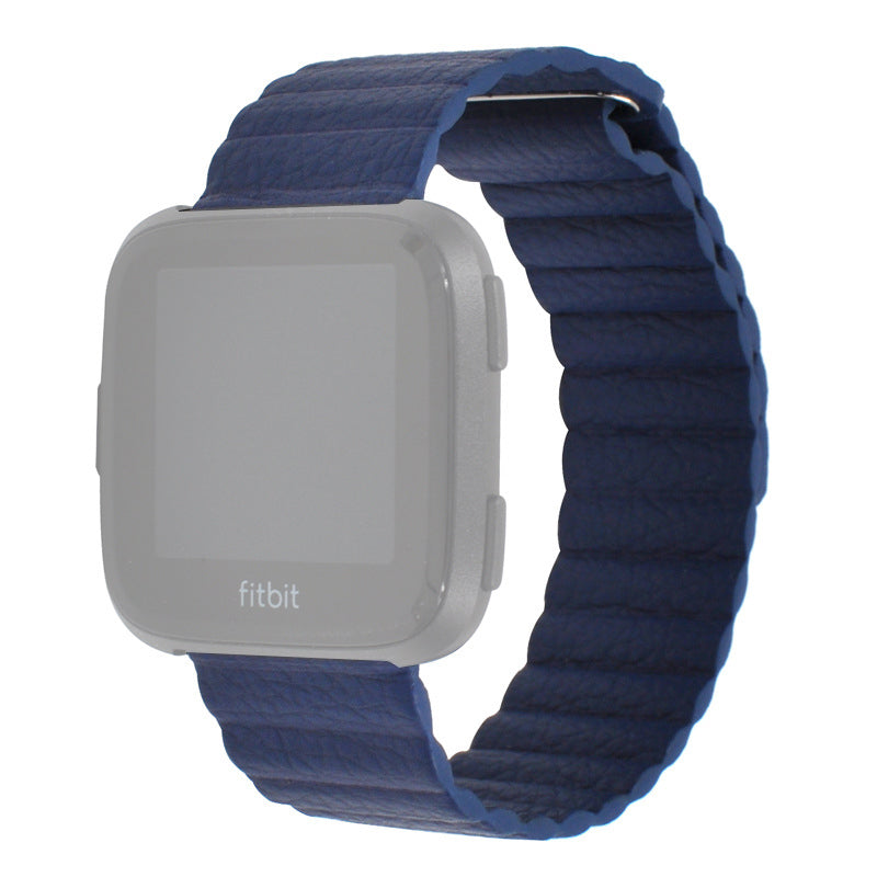Genuine Leather Watchband Replacement 22mm for Fitbit Versa 3 - Dark Blue