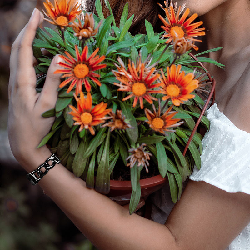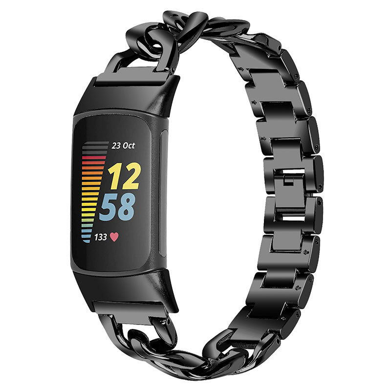 Replacement Watch Band Single Row Chain Watch Strap for Fitbit Charge 5 - Black