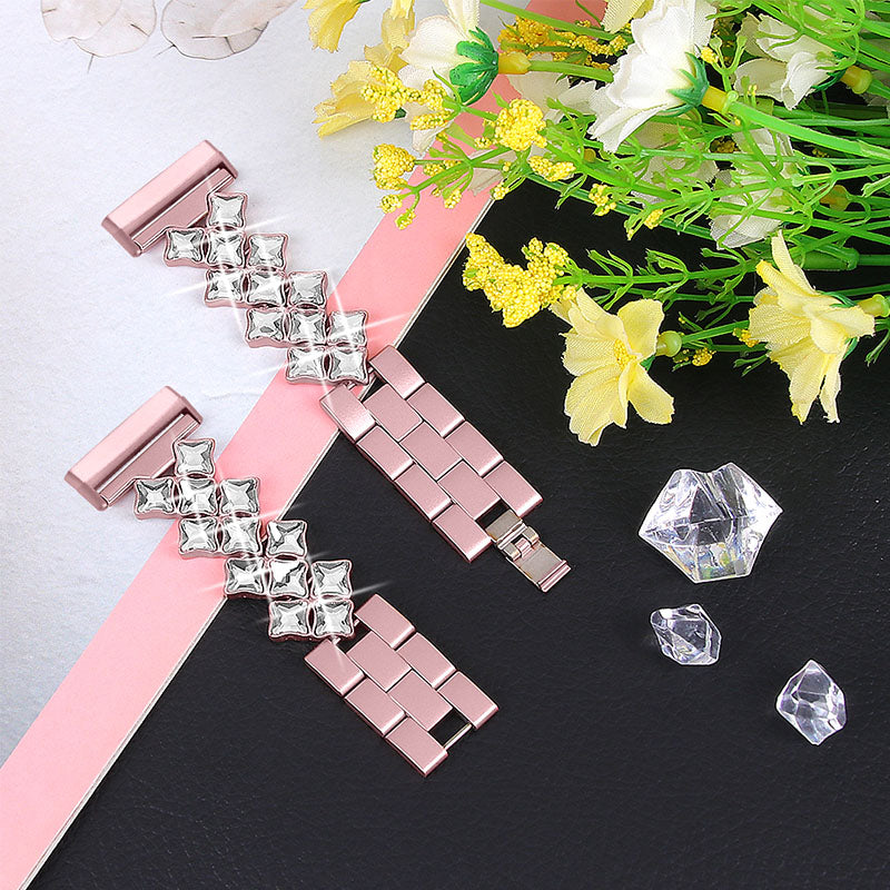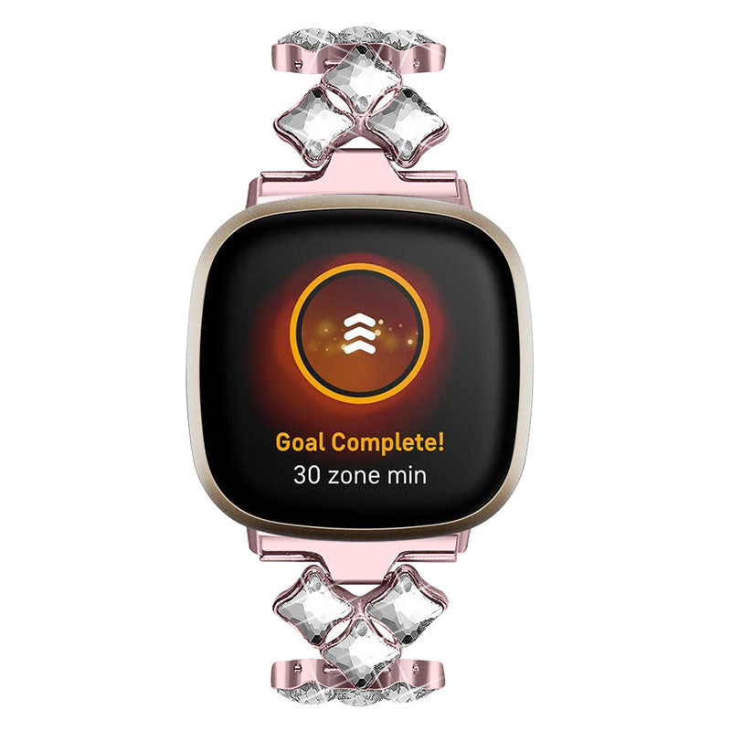 Rhinestone Rhombus Stainless Steel Watch Strap Replacement Watchband for Fitbit Versa 3 / Fitbit Sense - Rose Pink