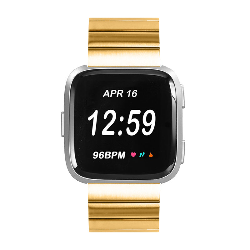 Smart Watch Band for Fitbit Versa 3/Sense, Buckle Design Stainless Steel Replacement Wrist Strap - Gold