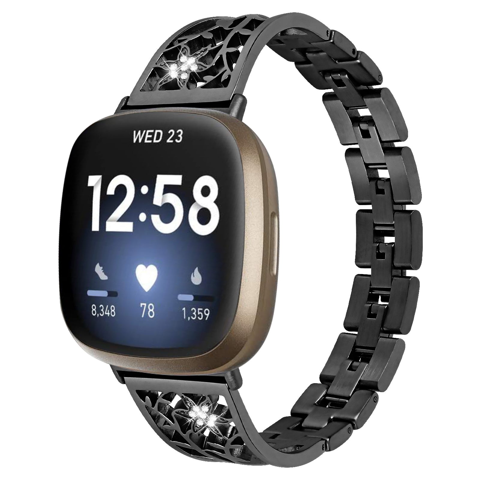 Stainless Steel Starfish Shape Rhinestone Decor Watch Strap Replacement for Fitbit Versa 3/Sense - Black