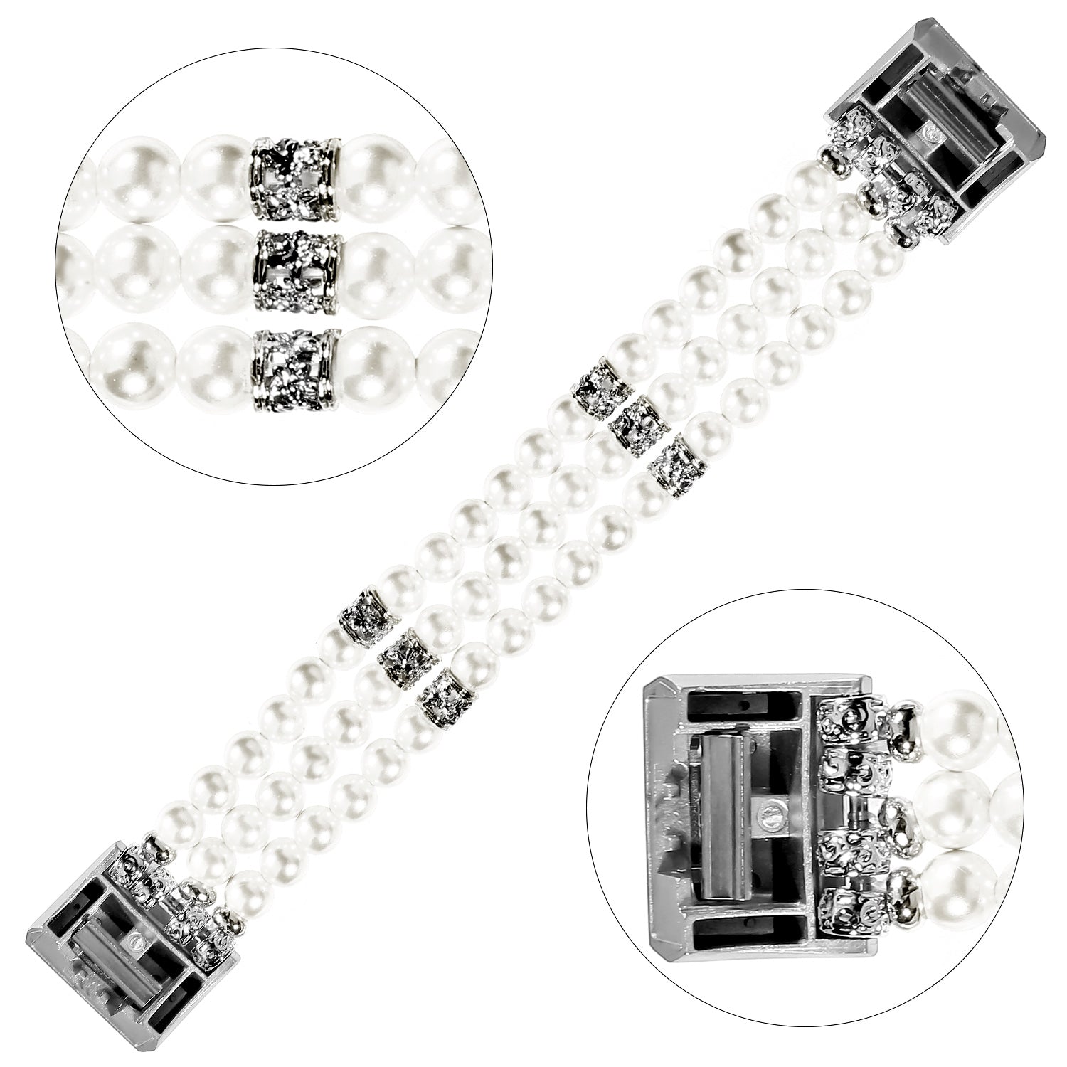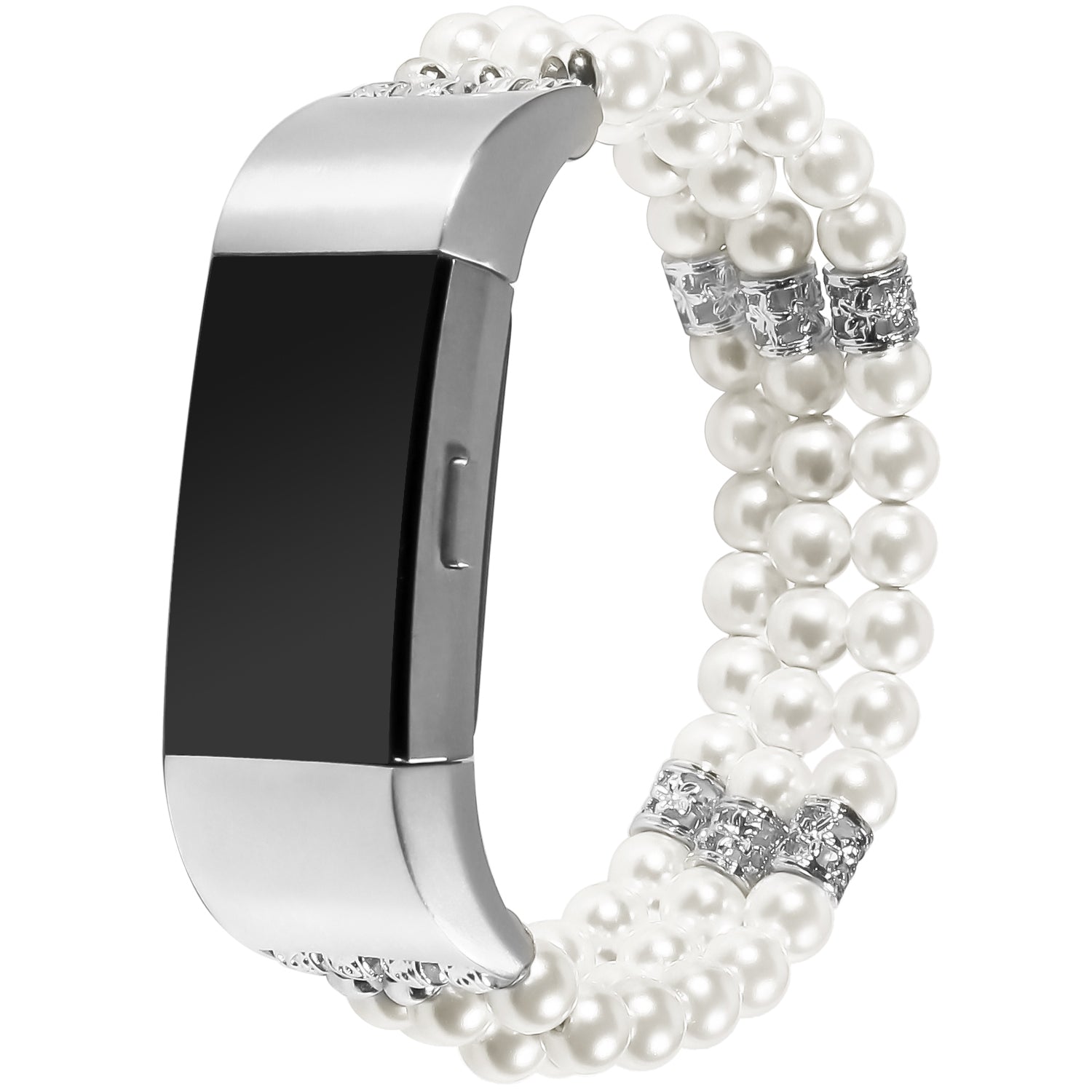 Stretchy Pearls Jewelry Bracelets Replacements Strap for Fitbit Charge 2 - White