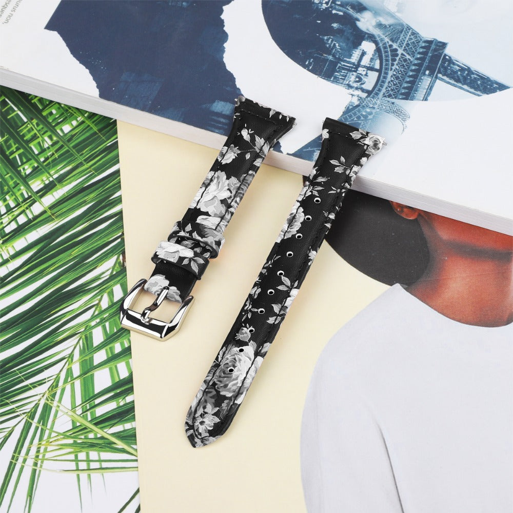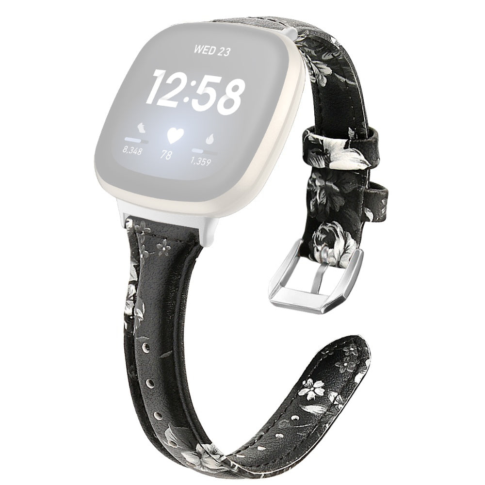 T-Shaped Genuine Leather Watch Band Replacement for Fitbit Versa 3 - Floral-print / White