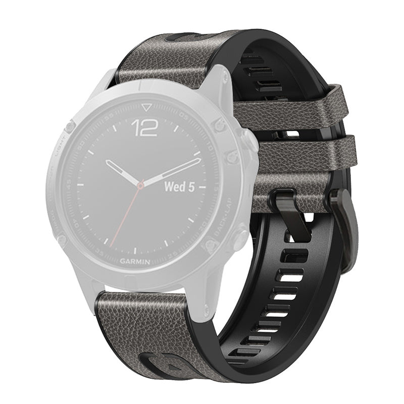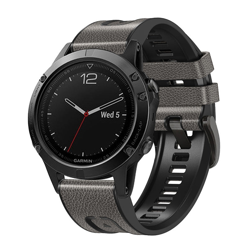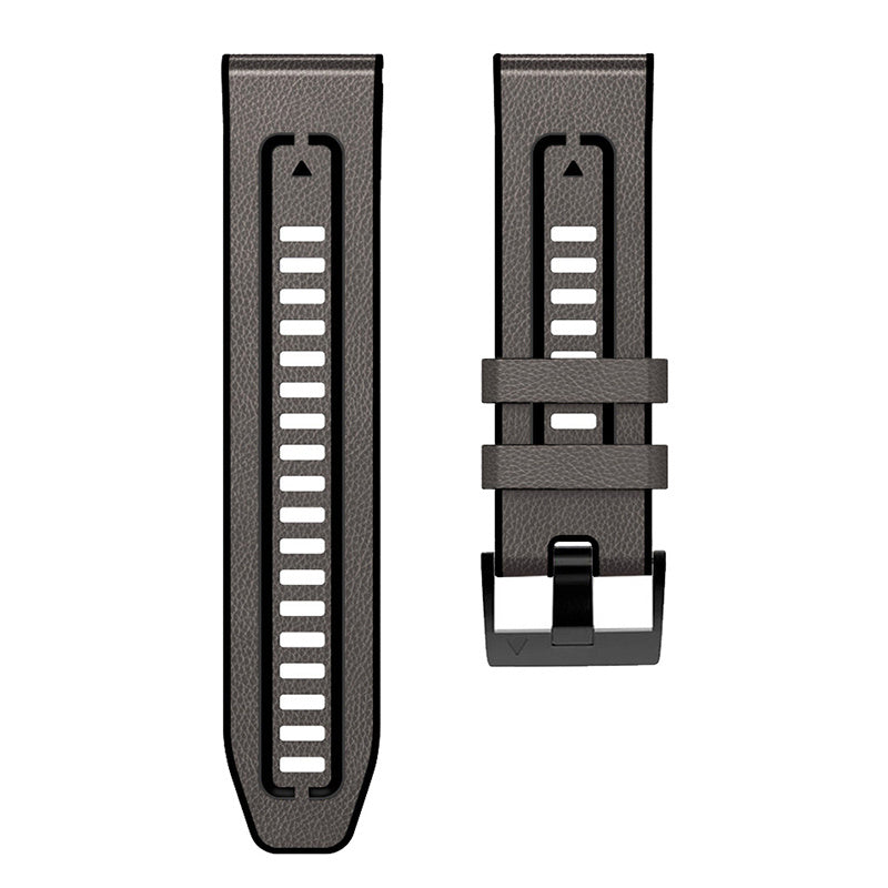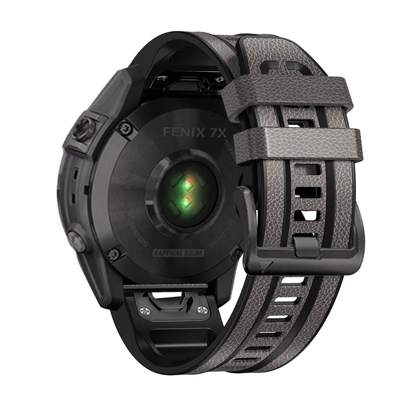 For Garmin Fenix 7X Quick Release Leather Coated Silicone Watch Band Replacement Wrist Strap 26mm - Grey
