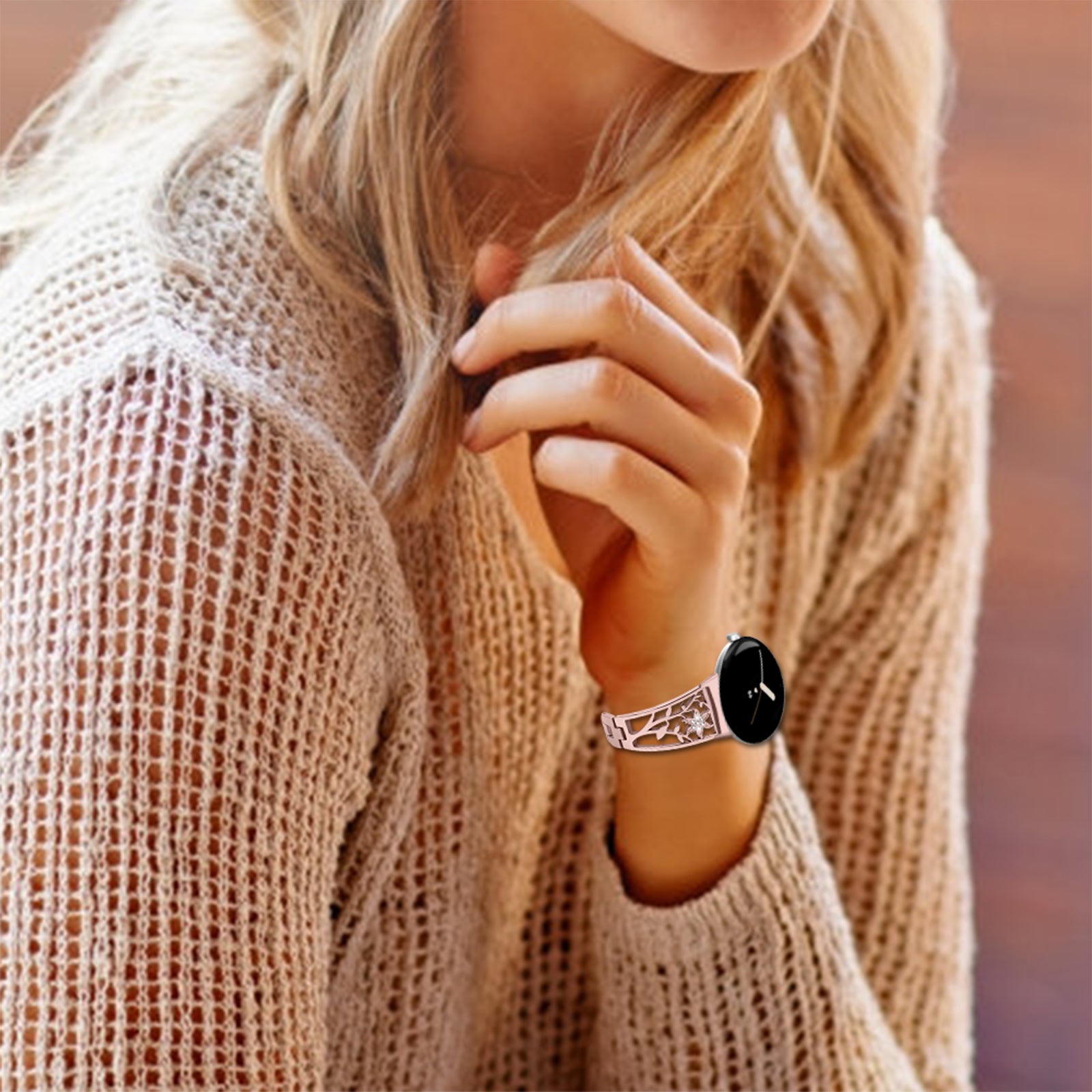 Metal Watch Band for Google Pixel Watch Rhinestone Decorated Watch Strap - Rose Pink