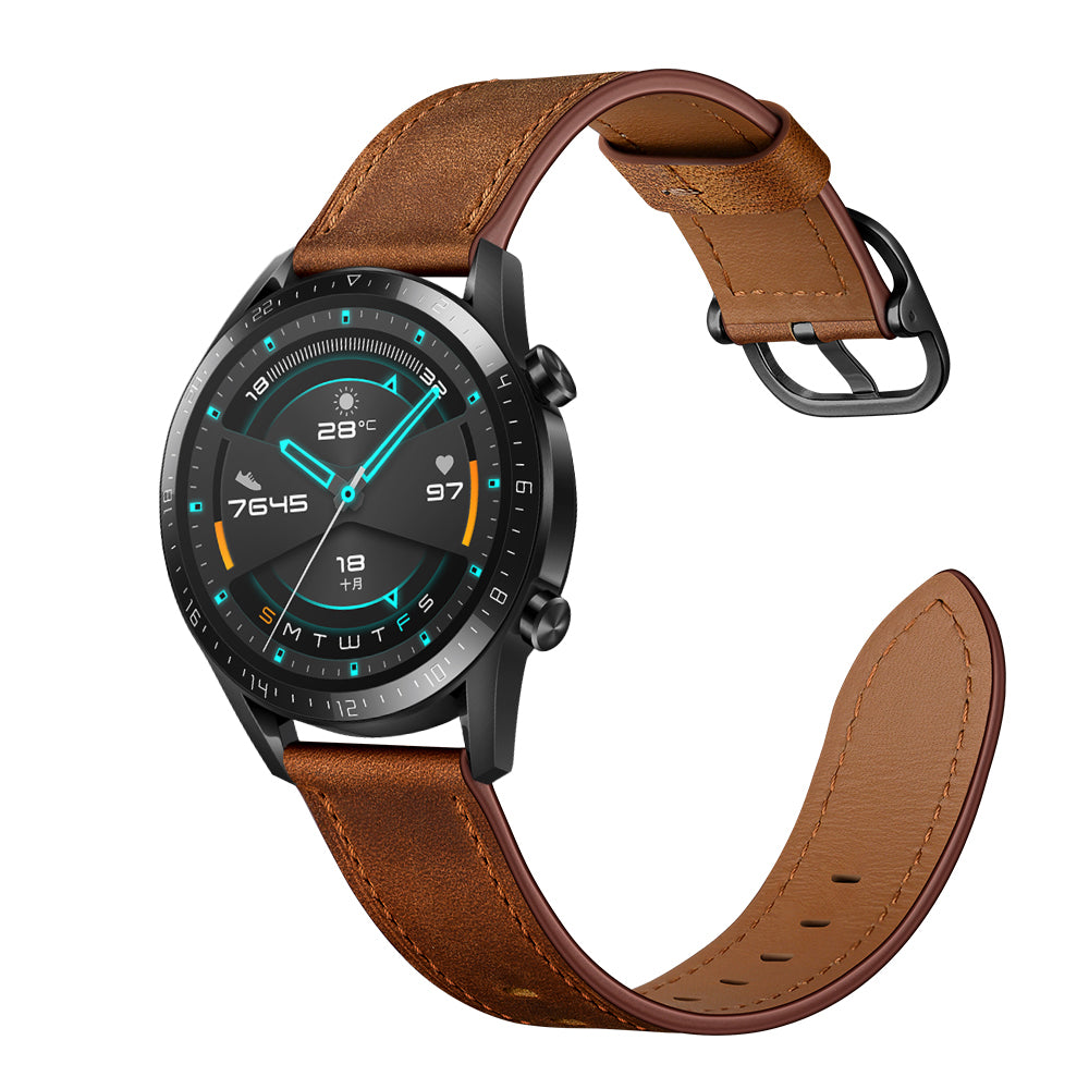 22mm Cowhide Leather Watch Band (DS Style) for Huawei Watch GT 2/1 / Honor Magic GT 2e 46mm - Coffee