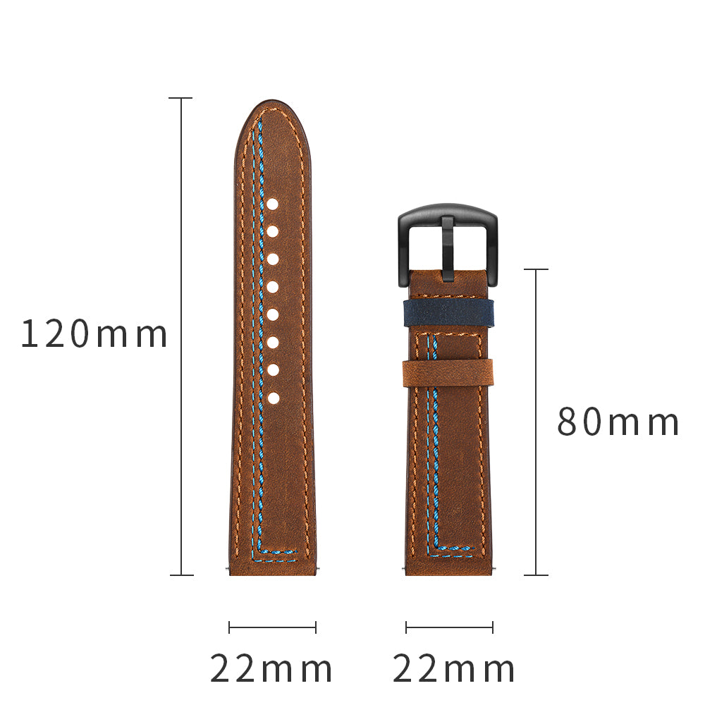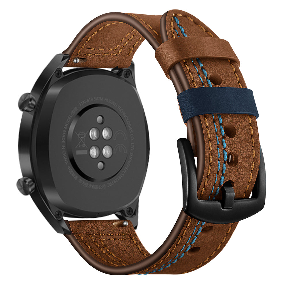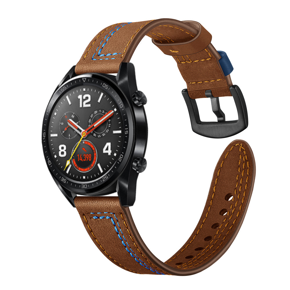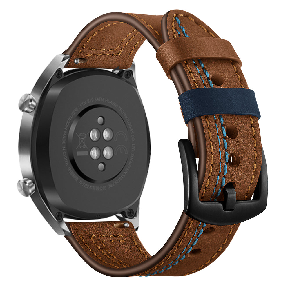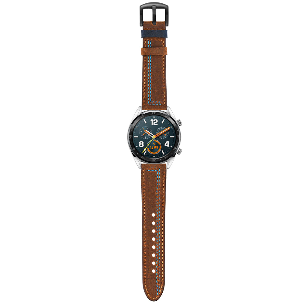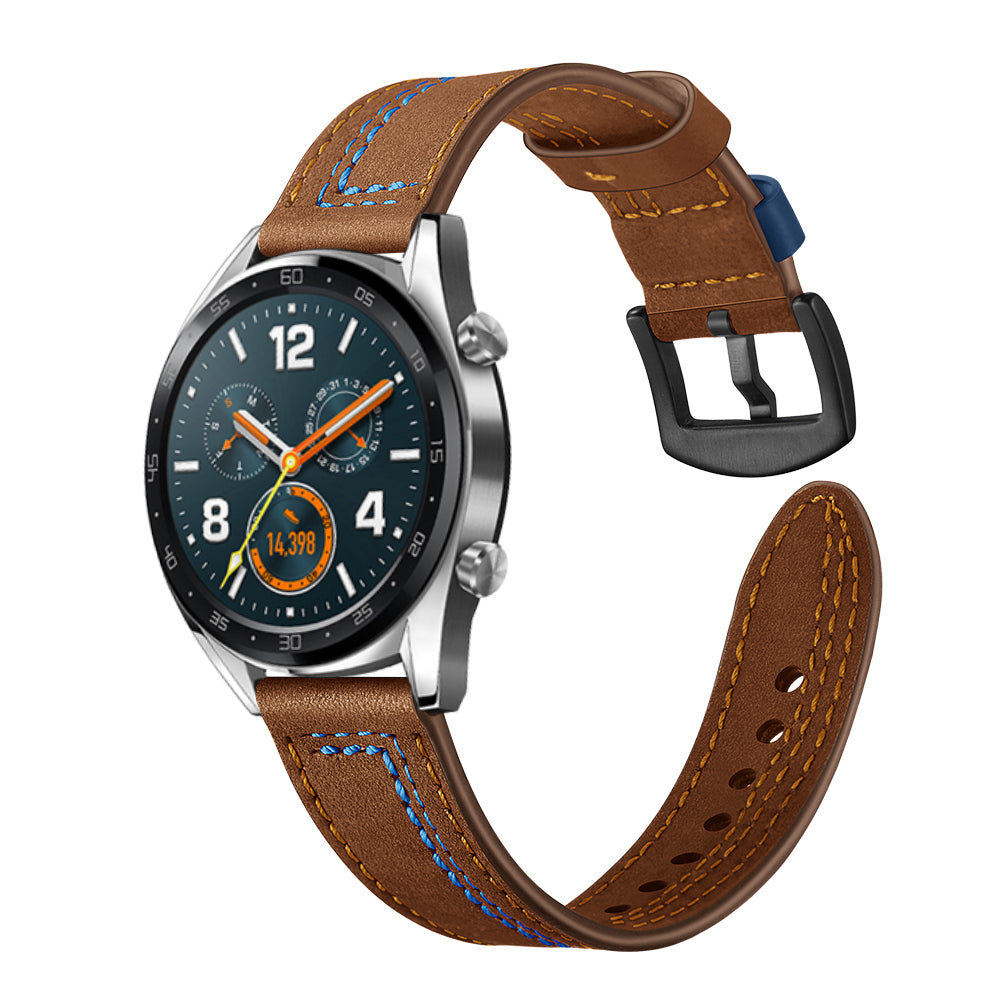 22mm Genuine Leather Smart Watch Strap Replacement with Stitching Decor for Huawei Watch GT1 / 2 / Watch Magic - Brown
