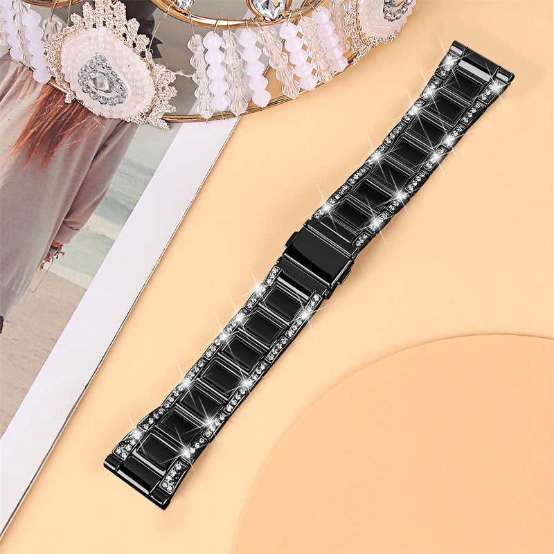 For Huawei Watch GT 2 42mm / Watch 2 / Honor MagicWatch 2 42mm Stainless Steel Watch Band Rhinestone Decor Resin Wrist Strap - Black